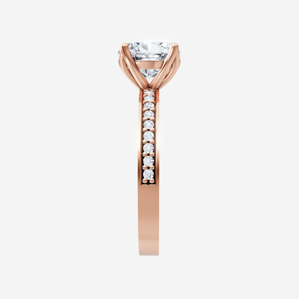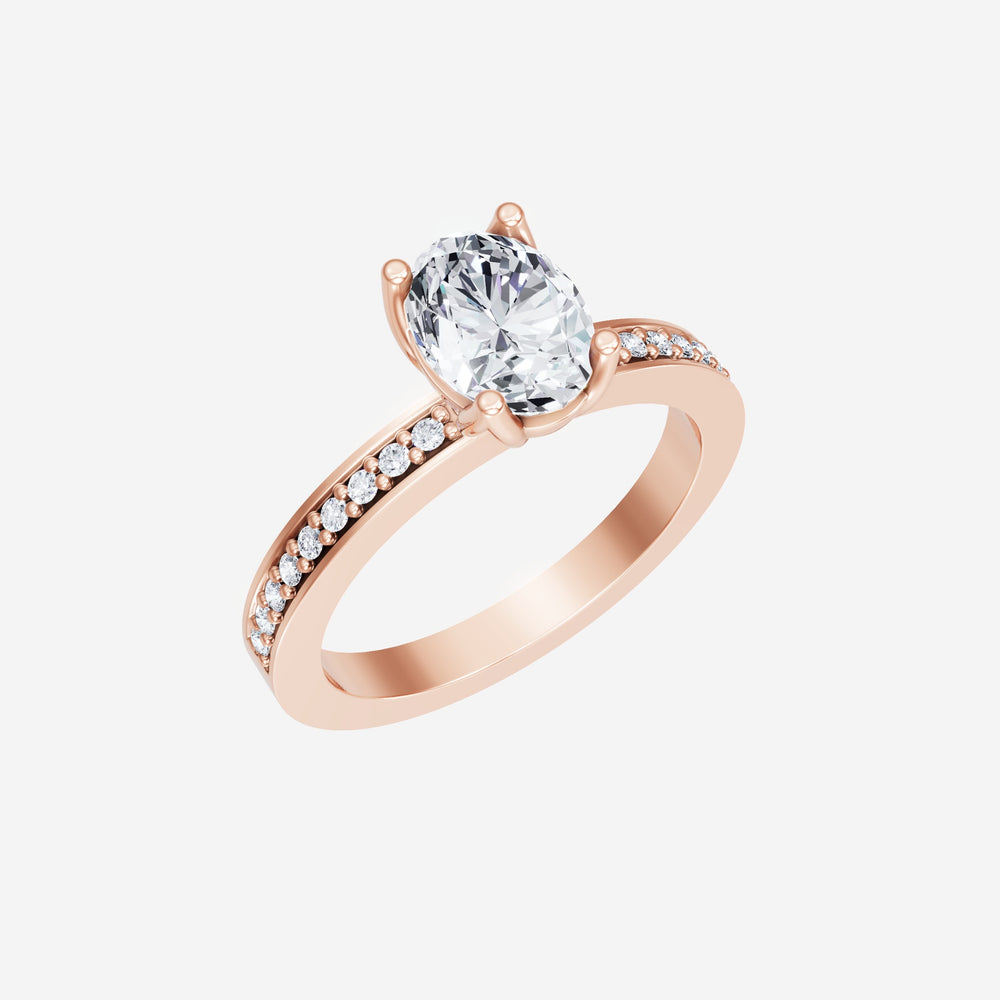 You’ve designed a ring that reflects lasting elegance and grace! Crafted from 14k Rose Gold, this exquisite Oval lab-grown diamond is the centerpiece of this unique design. This Single Pave Shank with a 4 Prong Flower Head head showcases the brilliance of the Oval diamond, creating a timeless look. This stunning ring makes the perfect symbol of everlasting love and devotion.