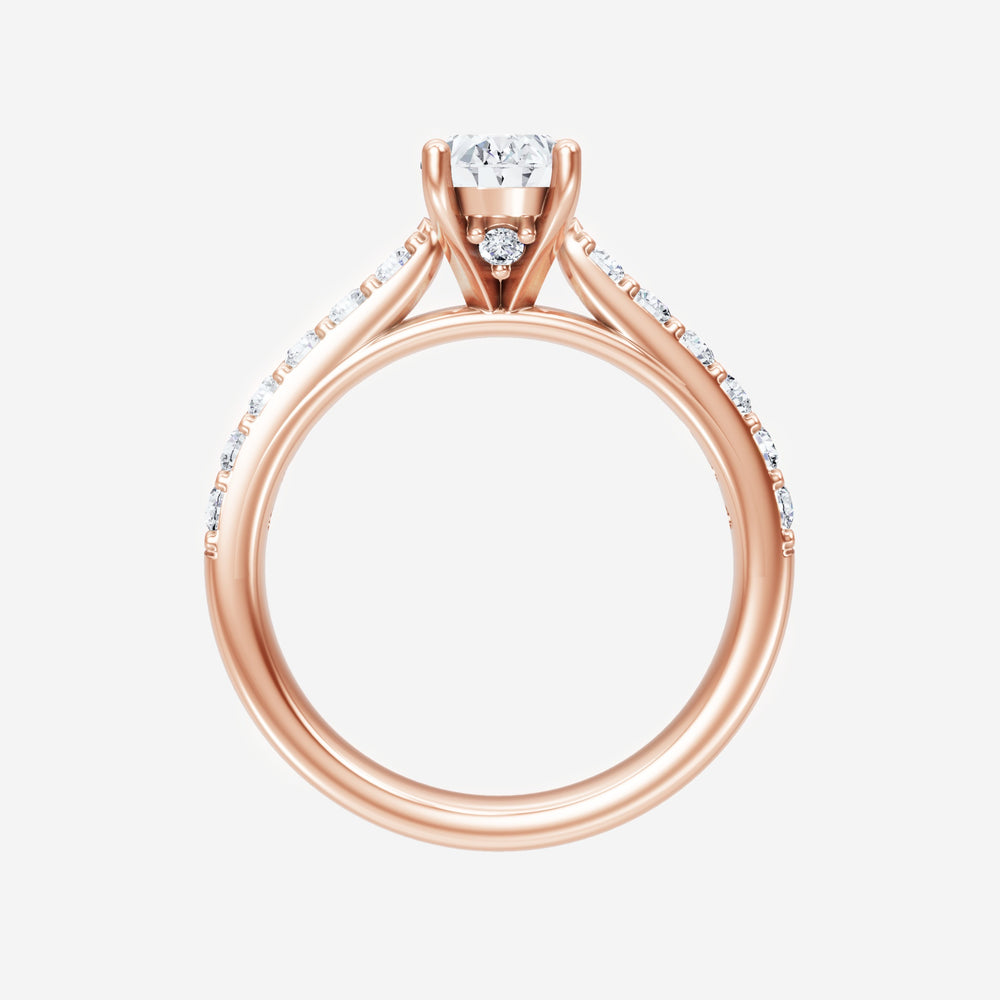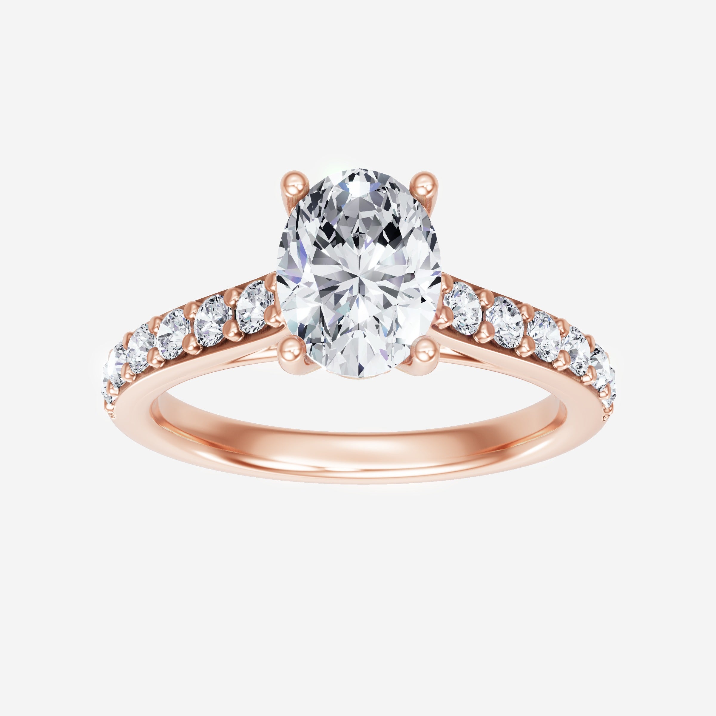 You’ve designed a ring that reflects lasting elegance and grace! Crafted from 14k Rose Gold, this exquisite Oval lab-grown diamond is the centerpiece of this unique design. This Cathedral Diamond Shank with a 4 Prong With Hidden 2 Stone head showcases the brilliance of the Oval diamond, creating a timeless look. Whether as a gift or a personal treasure, this ring will forever symbolize the most meaningful moments in life.