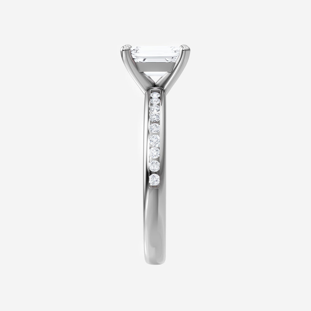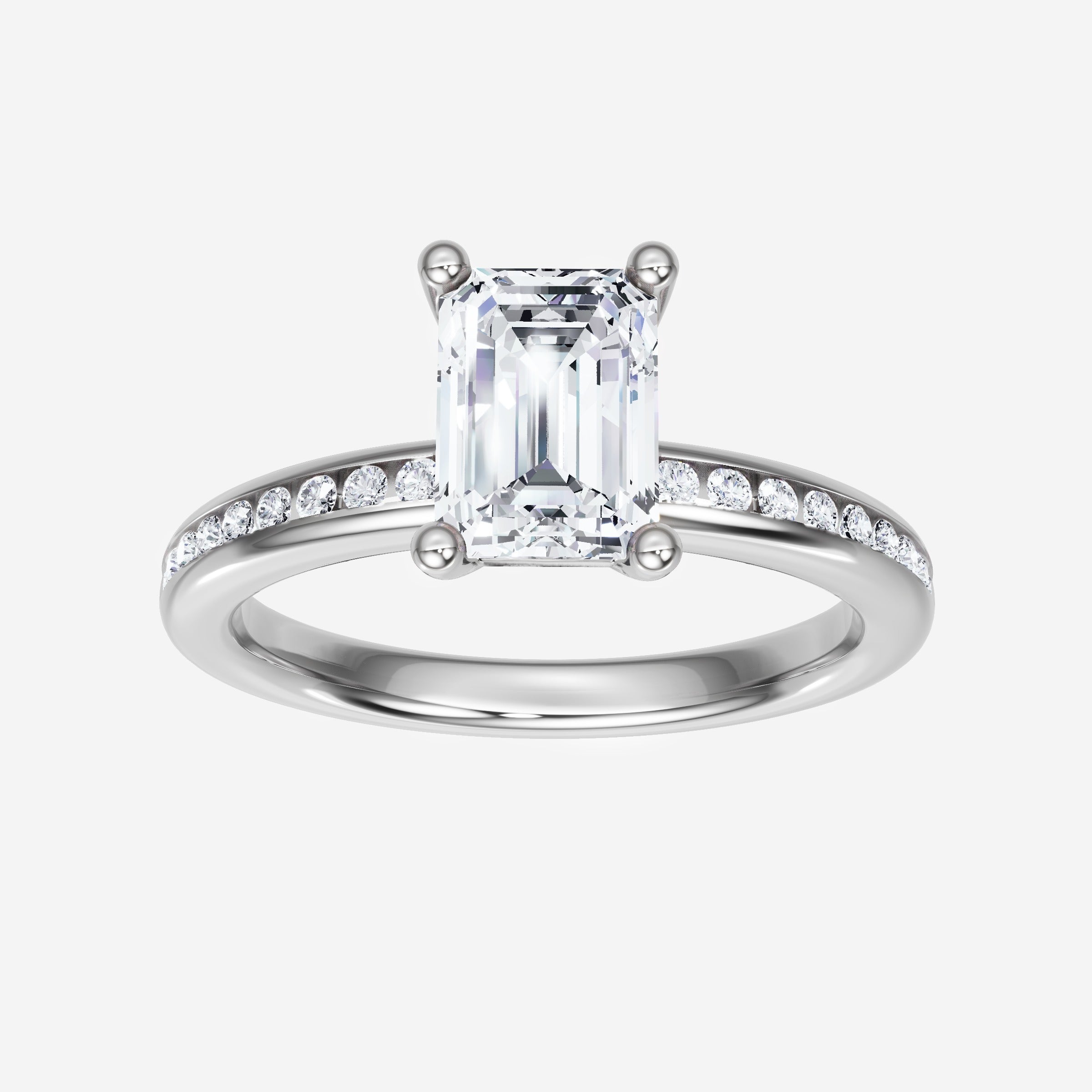 You’ve designed a ring that reflects lasting elegance and grace! Crafted from 18K White Gold, this exquisite Emerald lab-grown diamond is the centerpiece of this unique design. This Channel Set Shank with a 4 Prong Head head showcases the brilliance of the Emerald diamond, creating a timeless look. This elegant piece is the perfect symbol of love, strength, and timeless beauty.