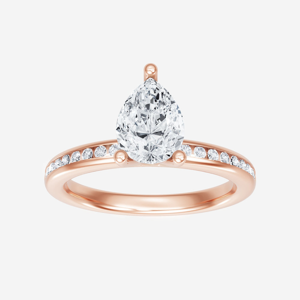 You’ve designed a ring that reflects lasting elegance and grace! Crafted from 14k Rose Gold, this exquisite Pear lab-grown diamond is the centerpiece of this unique design. This Channel Set Shank with a 3 Prong Head head showcases the brilliance of the Pear diamond, creating a timeless look. With this ring, celebrate every moment of joy, success, and love.