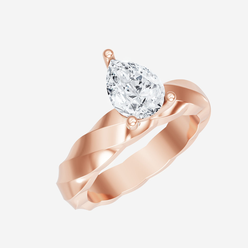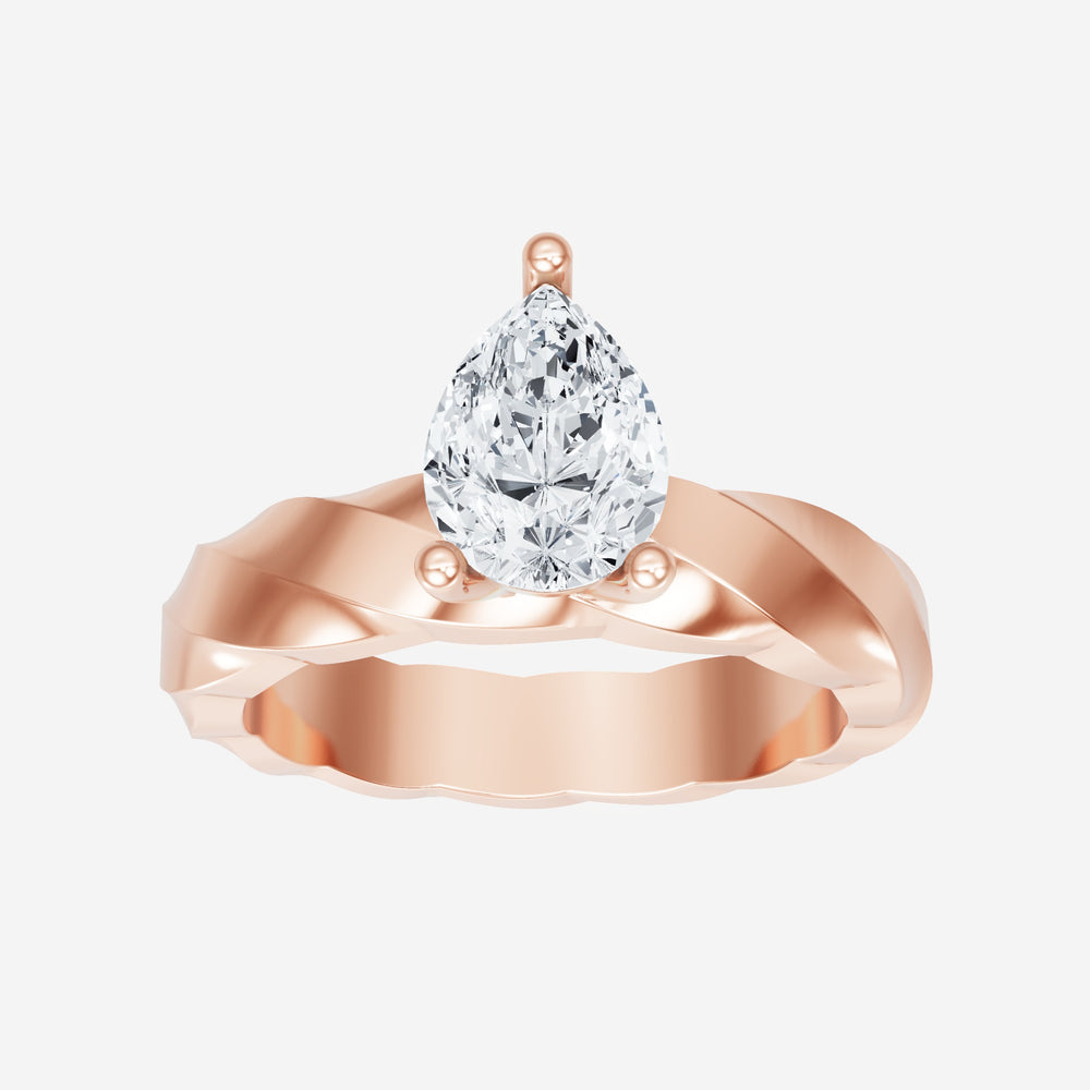 You’ve designed a ring that reflects lasting elegance and grace! Crafted from 14k Rose Gold, this exquisite Pear lab-grown diamond is the centerpiece of this unique design. This Twisted Shank with a 3 Prong Head head showcases the brilliance of the Pear diamond, creating a timeless look. This ring will become a cherished reminder of life's most treasured moments.