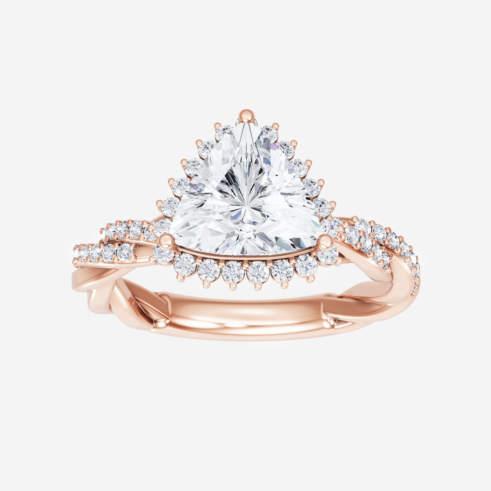 You’ve designed a ring that reflects lasting elegance and grace! Crafted from 14k Rose Gold, this exquisite Trillion lab-grown diamond is the centerpiece of this unique design. This Rope Diamond Shank with a 3 Prong Diana Halo head showcases the brilliance of the Trillion diamond, creating a timeless look. With this ring, celebrate every moment of joy, success, and love.
