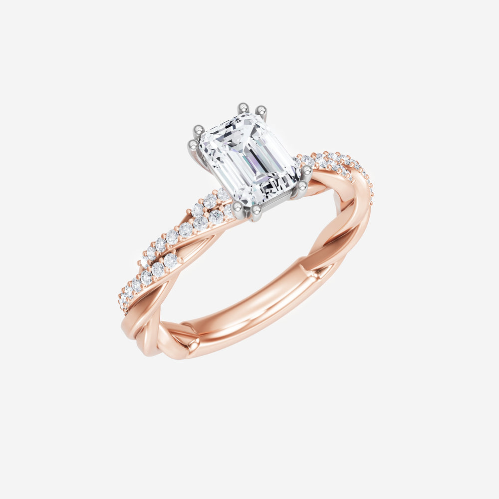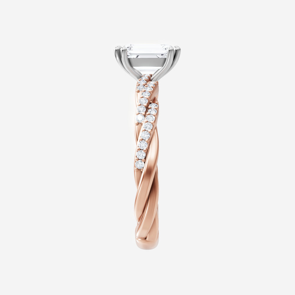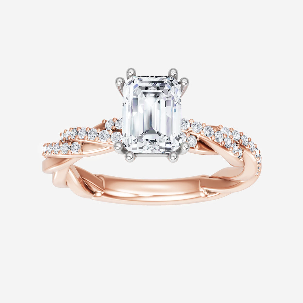 You’ve designed a ring that reflects lasting elegance and grace! Crafted from 14k Rose White Dual Tone, this exquisite Emerald lab-grown diamond is the centerpiece of this unique design. This Rope Diamond Shank with a 4 Prong Split Prong head showcases the brilliance of the Emerald diamond, creating a timeless look. This stunning ring makes the perfect symbol of everlasting love and devotion.