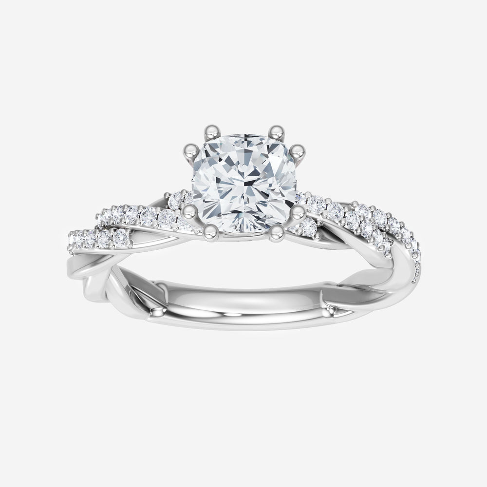 You’ve designed a ring that reflects lasting elegance and grace! Crafted from 14K White Gold, this exquisite Cushion lab-grown diamond is the centerpiece of this unique design. This Rope Diamond Shank with a 4 Prong Split Prong head showcases the brilliance of the Cushion diamond, creating a timeless look. A perfect choice to celebrate love, commitment, and everything in between.