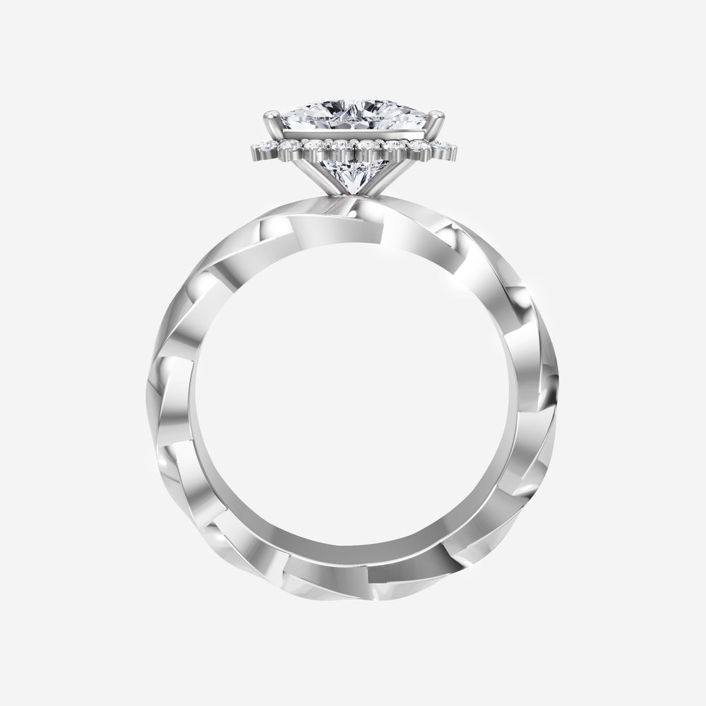You’ve designed a ring that reflects lasting elegance and grace! Crafted from 14K White Gold, this exquisite Trillion lab-grown diamond is the centerpiece of this unique design. This Twisted Shank with a 3 Prong Diana Halo head showcases the brilliance of the Trillion diamond, creating a timeless look. It's a piece of elegance and beauty, perfect for marking life's most beautiful occasions.
