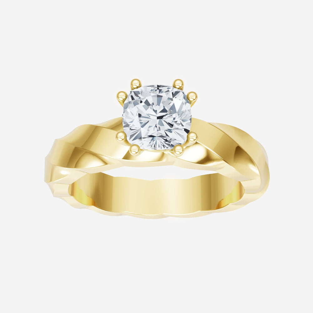 You’ve designed a ring that reflects lasting elegance and grace! Crafted from 14K Yellow Gold, this exquisite Cushion lab-grown diamond is the centerpiece of this unique design. This Twisted Shank with a 4 Prong Split Prong head showcases the brilliance of the Cushion diamond, creating a timeless look. With this ring, celebrate every moment of joy, success, and love.