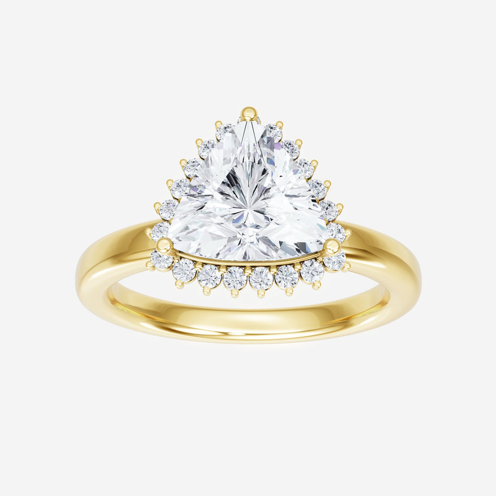 You’ve designed a ring that reflects lasting elegance and grace! Crafted from 14K Yellow Gold, this exquisite Trillion lab-grown diamond is the centerpiece of this unique design. This Basic Plain Shank with a 3 Prong Diana Halo head showcases the brilliance of the Trillion diamond, creating a timeless look. This stunning ring makes the perfect symbol of everlasting love and devotion.