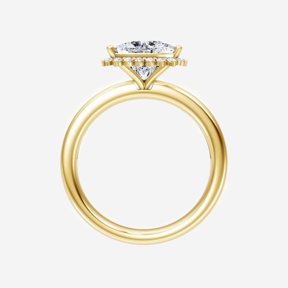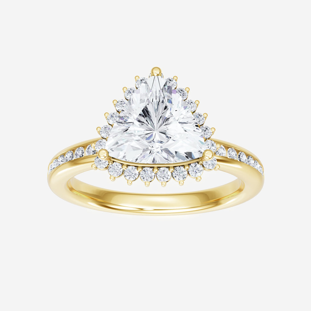 You’ve designed a ring that reflects lasting elegance and grace! Crafted from 14K Yellow Gold, this exquisite Trillion lab-grown diamond is the centerpiece of this unique design. This Channel Set Shank with a 3 Prong Diana Halo head showcases the brilliance of the Trillion diamond, creating a timeless look. Ideal for those who seek both beauty and meaning, this ring will stand as a testament to cherished memories.