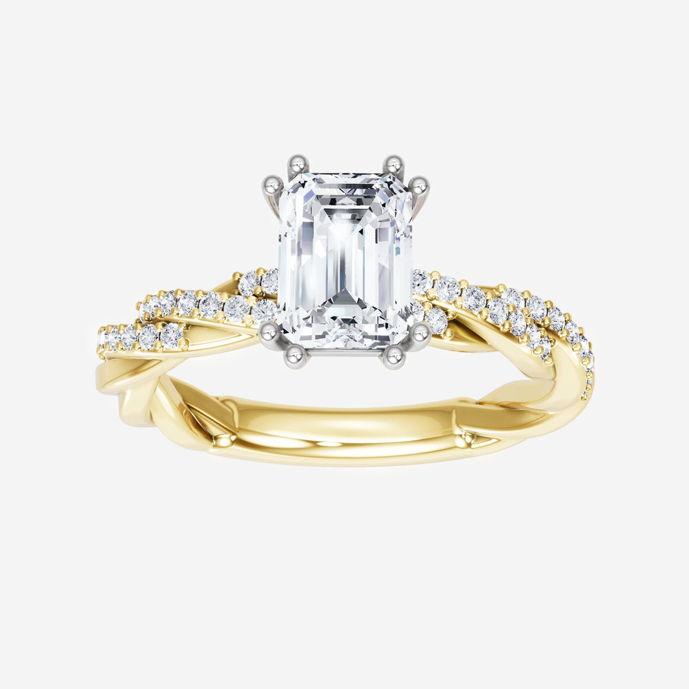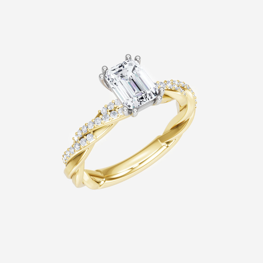 You’ve designed a ring that reflects lasting elegance and grace! Crafted from 14k Yellow White Dual Tone, this exquisite Emerald lab-grown diamond is the centerpiece of this unique design. This Rope Diamond Shank with a 4 Prong Split Prong head showcases the brilliance of the Emerald diamond, creating a timeless look. This elegant piece is the perfect symbol of love, strength, and timeless beauty.
