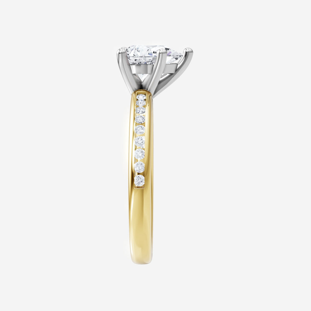You’ve designed a ring that reflects lasting elegance and grace! Crafted from 14k Yellow White Dual Tone, this exquisite Pear lab-grown diamond is the centerpiece of this unique design. This Channel Set Shank with a 4 Prong Flower Head head showcases the brilliance of the Pear diamond, creating a timeless look. This stunning ring makes the perfect symbol of everlasting love and devotion.