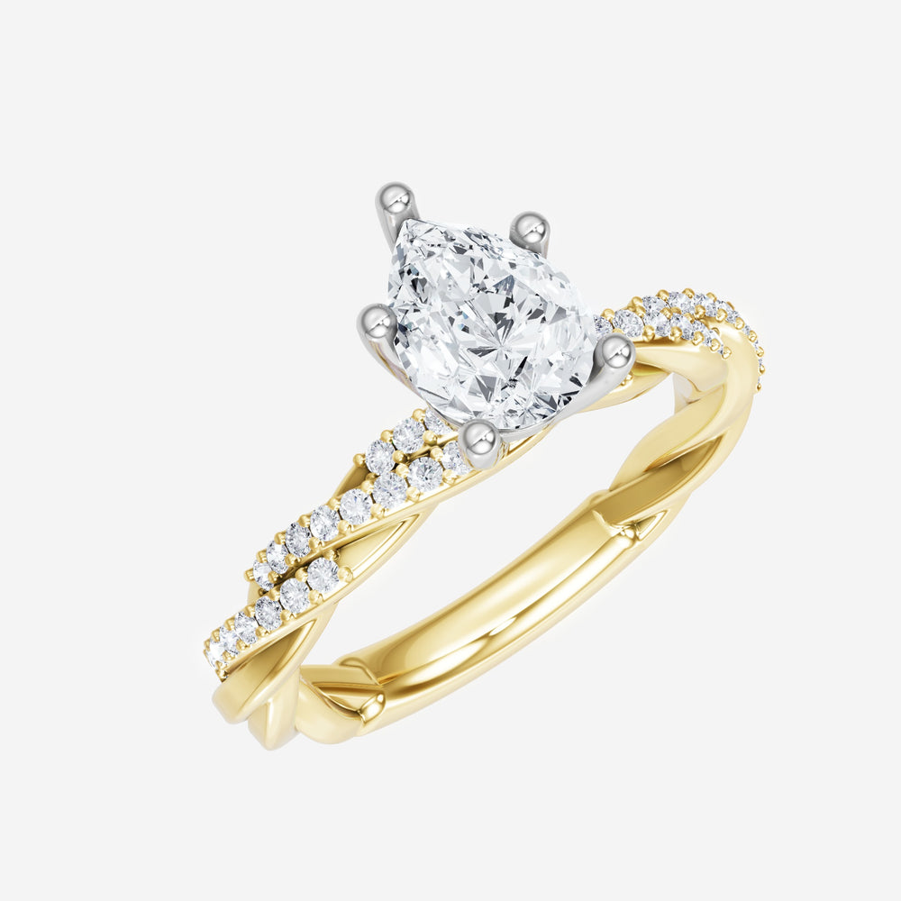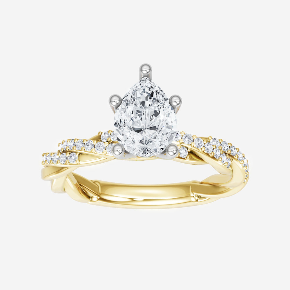 You’ve designed a ring that reflects lasting elegance and grace! Crafted from 14k Yellow White Dual Tone, this exquisite Pear lab-grown diamond is the centerpiece of this unique design. This Rope Diamond Shank with a 4 Prong Flower Head head showcases the brilliance of the Pear diamond, creating a timeless look. This elegant piece is the perfect symbol of love, strength, and timeless beauty.