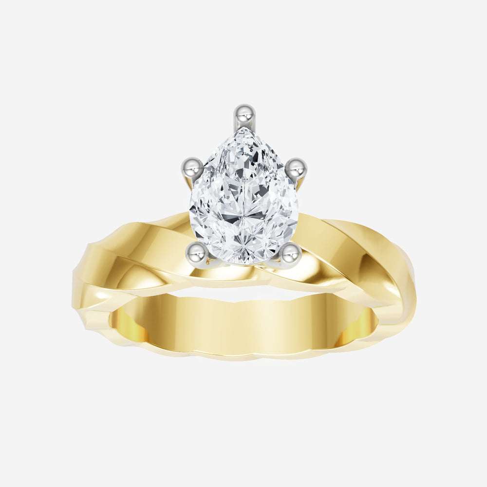 You’ve designed a ring that reflects lasting elegance and grace! Crafted from 14k Yellow White Dual Tone, this exquisite Pear lab-grown diamond is the centerpiece of this unique design. This Twisted Shank with a 5 Prong Head head showcases the brilliance of the Pear diamond, creating a timeless look. This stunning ring makes the perfect symbol of everlasting love and devotion.