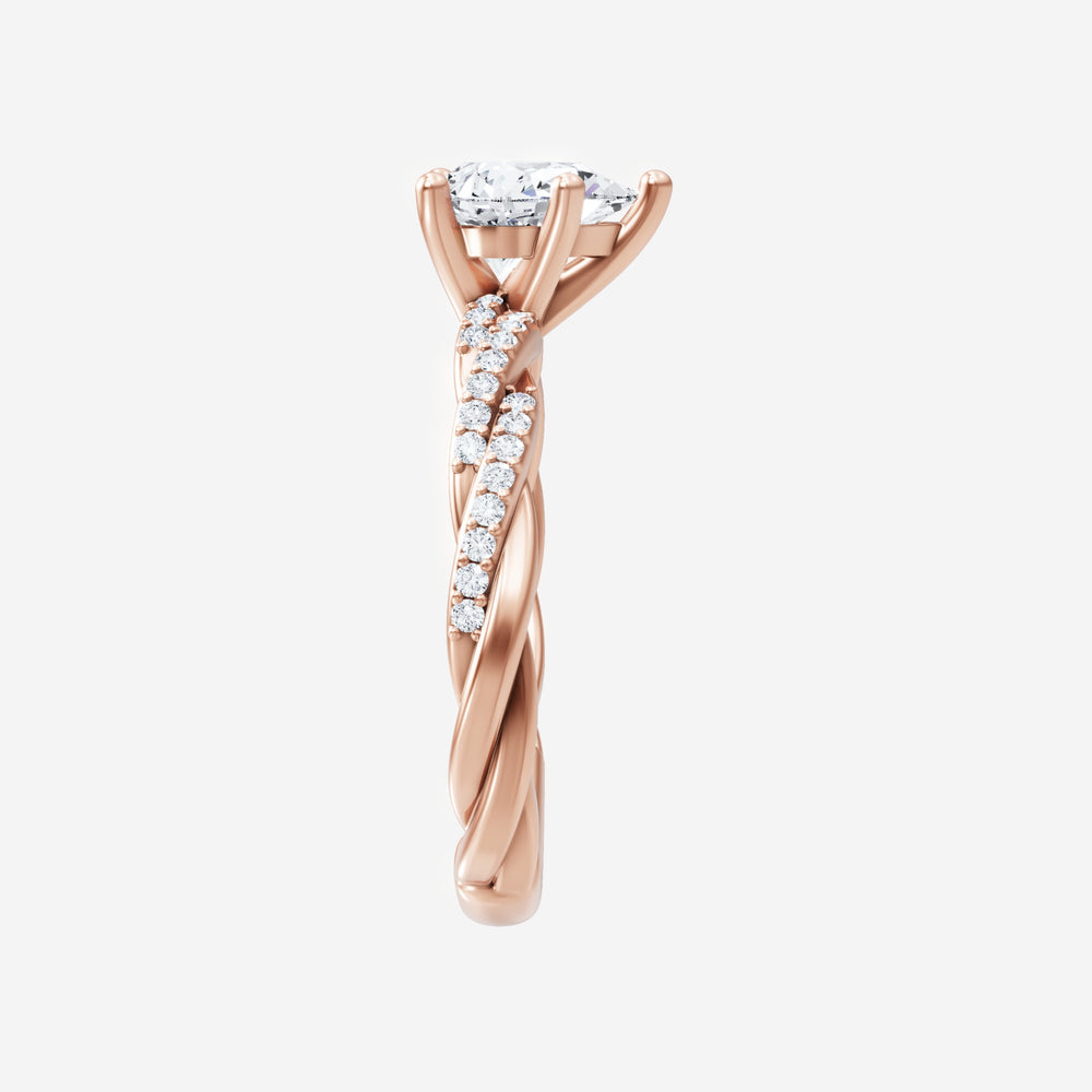 You’ve designed a ring that reflects lasting elegance and grace! Crafted from 18K Rose Gold, this exquisite Pear lab-grown diamond is the centerpiece of this unique design. This Rope Diamond Shank with a 4 Prong Flower Head head showcases the brilliance of the Pear diamond, creating a timeless look. This elegant piece is the perfect symbol of love, strength, and timeless beauty.