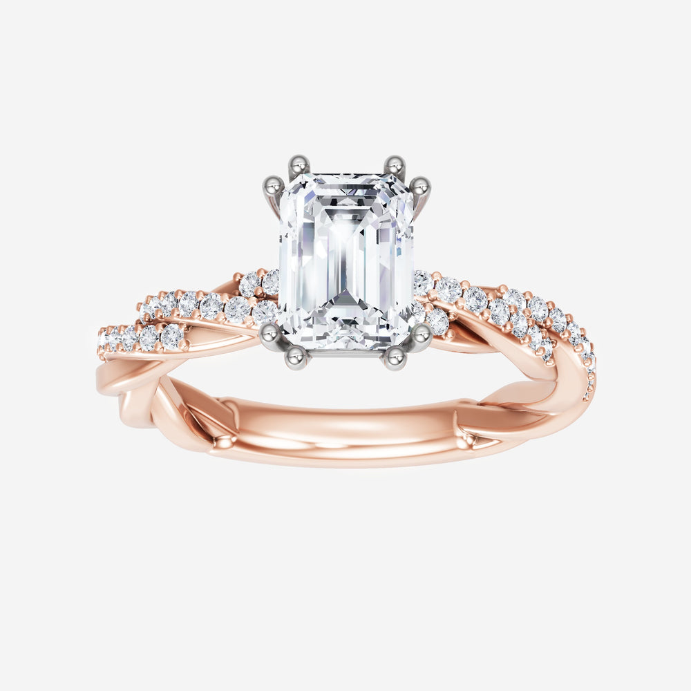 You’ve designed a ring that reflects lasting elegance and grace! Crafted from 18k Rose White Dual Tone, this exquisite Emerald lab-grown diamond is the centerpiece of this unique design. This Rope Diamond Shank with a 4 Prong Split Prong head showcases the brilliance of the Emerald diamond, creating a timeless look. It's a piece of elegance and beauty, perfect for marking life's most beautiful occasions.