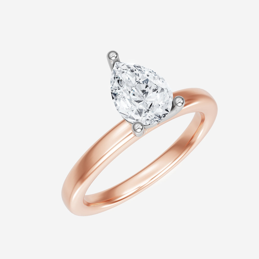 You’ve designed a ring that reflects lasting elegance and grace! Crafted from 18k Rose White Dual Tone, this exquisite Pear lab-grown diamond is the centerpiece of this unique design. This Basic Plain Shank with a 3 Prong Head head showcases the brilliance of the Pear diamond, creating a timeless look. It's a piece of elegance and beauty, perfect for marking life's most beautiful occasions.