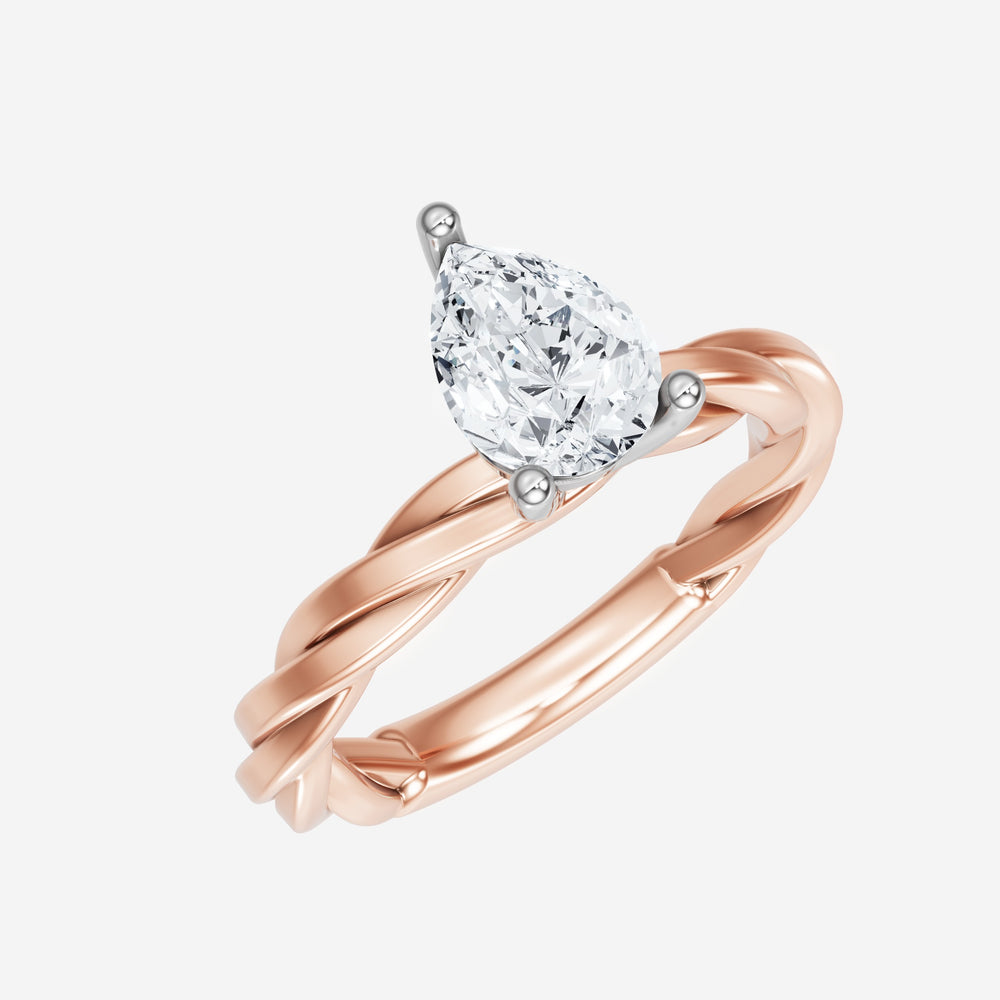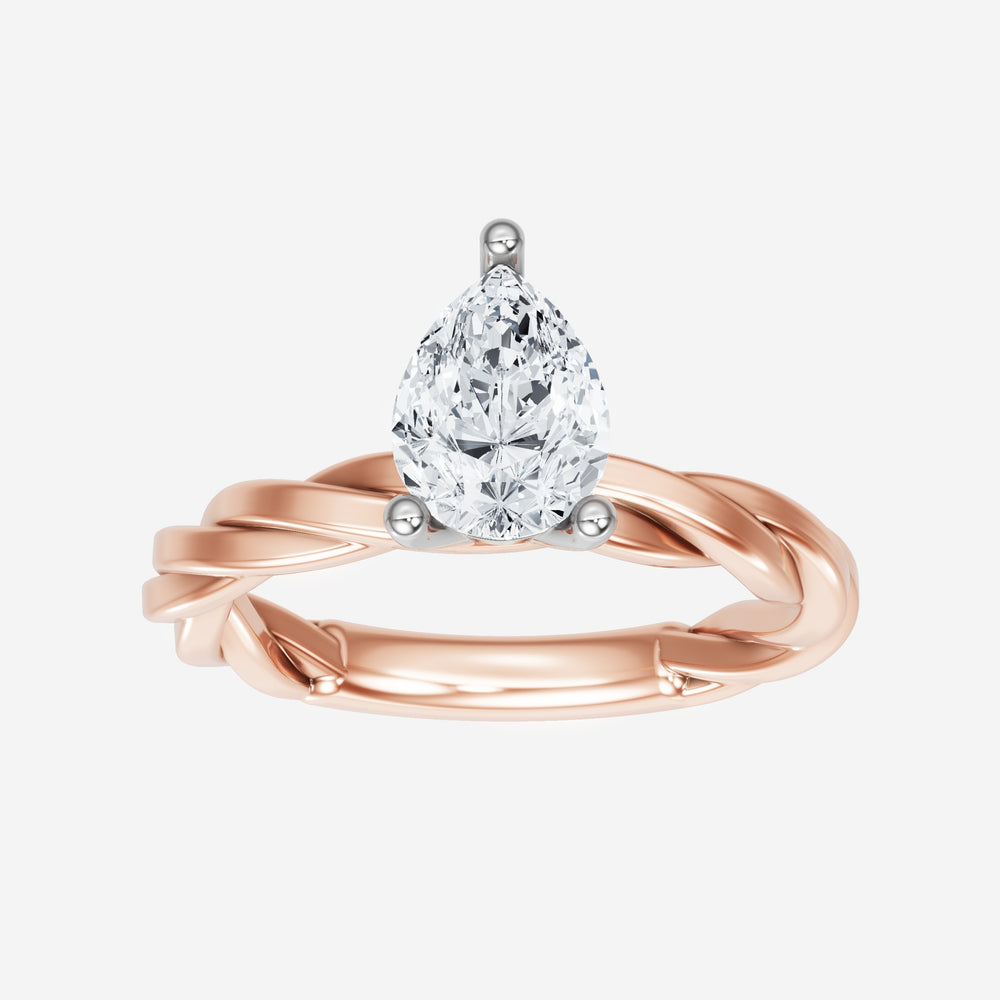 You’ve designed a ring that reflects lasting elegance and grace! Crafted from 18k Rose White Dual Tone, this exquisite Pear lab-grown diamond is the centerpiece of this unique design. This Rope Plain Shank with a 3 Prong Head head showcases the brilliance of the Pear diamond, creating a timeless look. This stunning ring makes the perfect symbol of everlasting love and devotion.