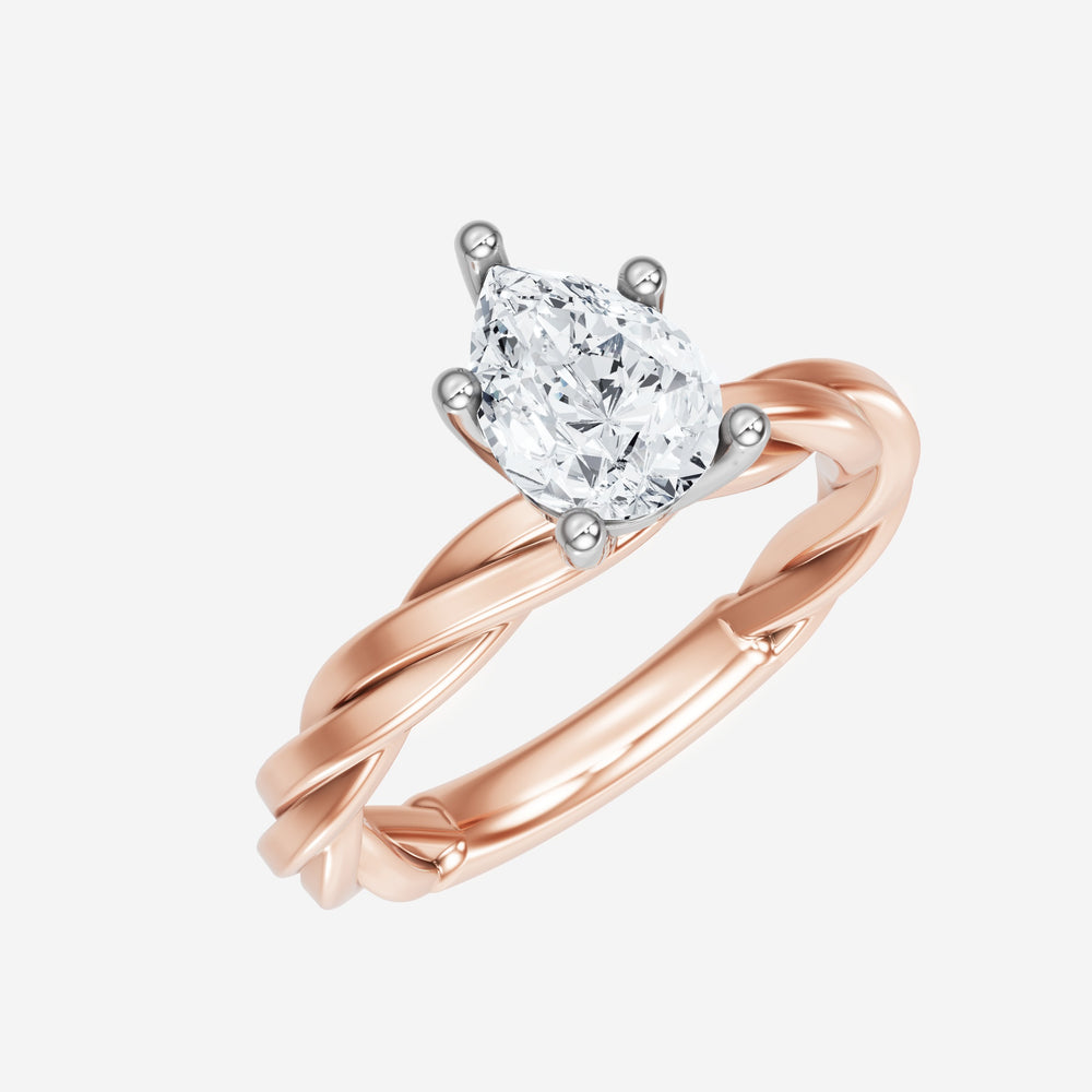 You’ve designed a ring that reflects lasting elegance and grace! Crafted from 18k Rose White Dual Tone, this exquisite Pear lab-grown diamond is the centerpiece of this unique design. This Rope Plain Shank with a 4 Prong Flower Head head showcases the brilliance of the Pear diamond, creating a timeless look. This elegant piece is the perfect symbol of love, strength, and timeless beauty.