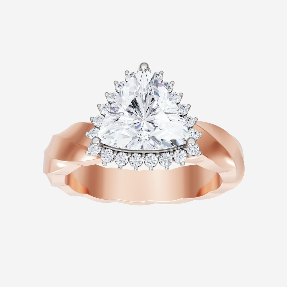 You’ve designed a ring that reflects lasting elegance and grace! Crafted from 18k Rose White Dual Tone, this exquisite Trillion lab-grown diamond is the centerpiece of this unique design. This Twisted Shank with a 3 Prong Diana Halo head showcases the brilliance of the Trillion diamond, creating a timeless look. With this ring, celebrate every moment of joy, success, and love.