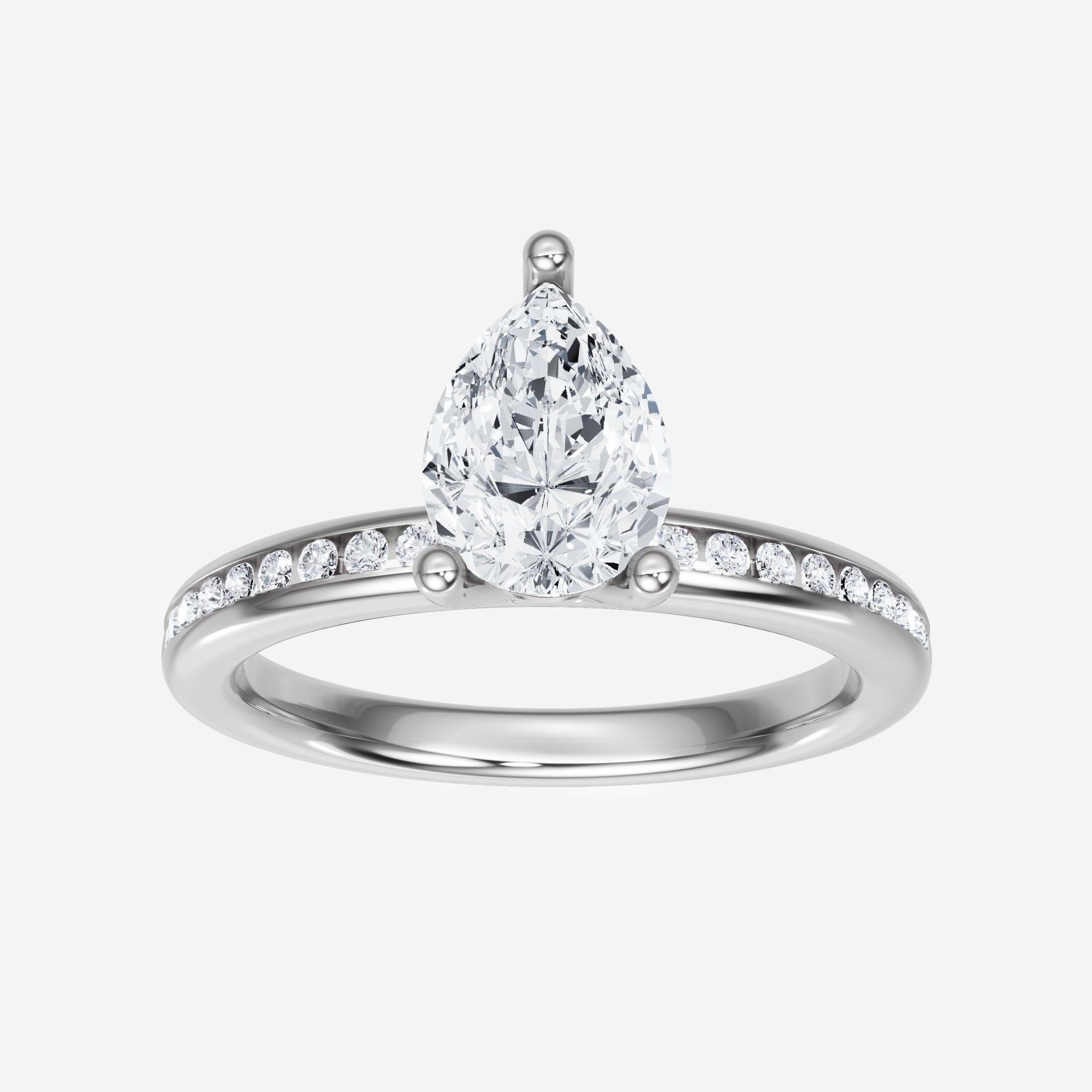 You’ve designed a ring that reflects lasting elegance and grace! Crafted from 18K White Gold, this exquisite Pear lab-grown diamond is the centerpiece of this unique design. This Channel Set Shank with a 3 Prong Head head showcases the brilliance of the Pear diamond, creating a timeless look. A perfect choice to celebrate love, commitment, and everything in between.