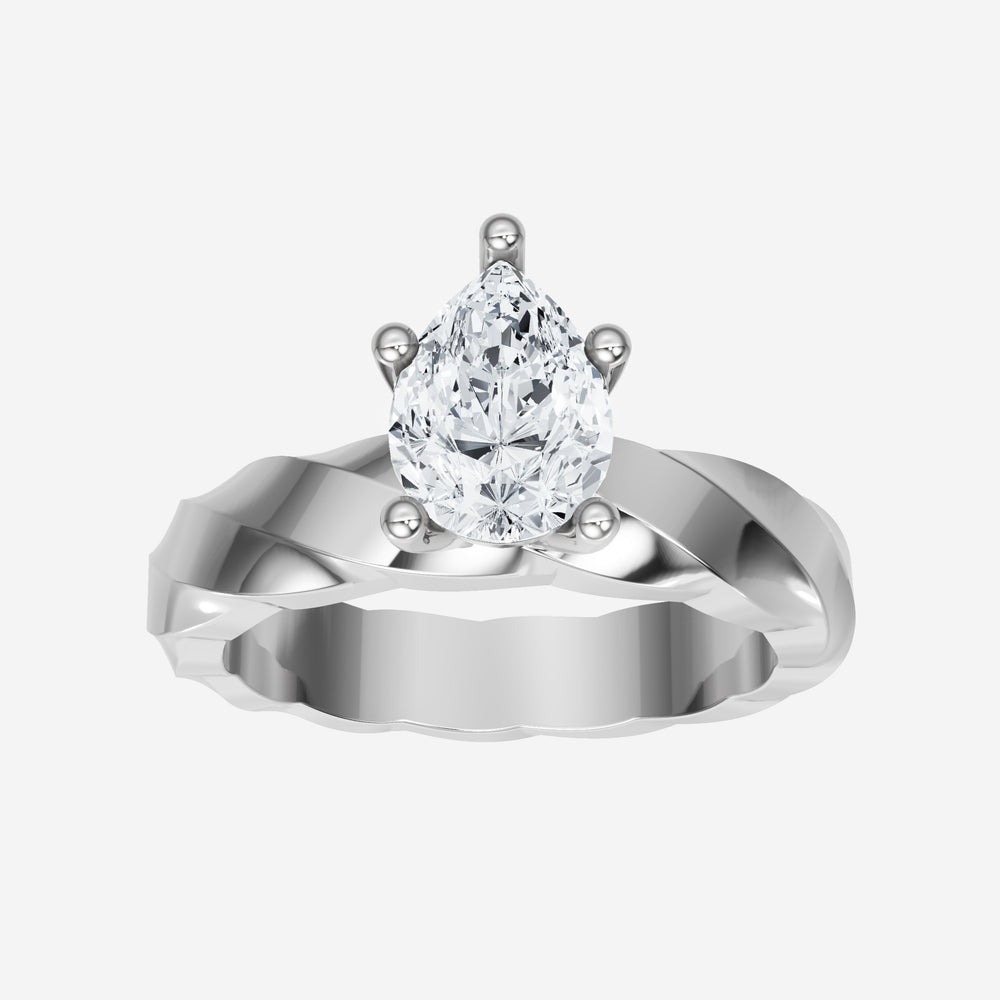 You’ve designed a ring that reflects lasting elegance and grace! Crafted from 18K White Gold, this exquisite Pear lab-grown diamond is the centerpiece of this unique design. This Twisted Shank with a 5 Prong Head head showcases the brilliance of the Pear diamond, creating a timeless look. This stunning ring makes the perfect symbol of everlasting love and devotion.