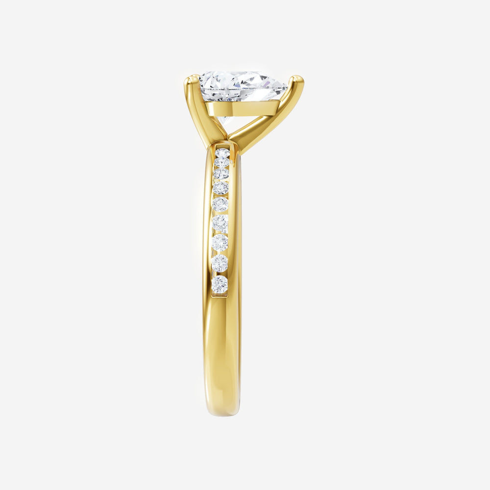You’ve designed a ring that reflects lasting elegance and grace! Crafted from 18K Yellow Gold, this exquisite Pear lab-grown diamond is the centerpiece of this unique design. This Channel Set Shank with a 3 Prong Head head showcases the brilliance of the Pear diamond, creating a timeless look. Ideal for those who seek both beauty and meaning, this ring will stand as a testament to cherished memories.