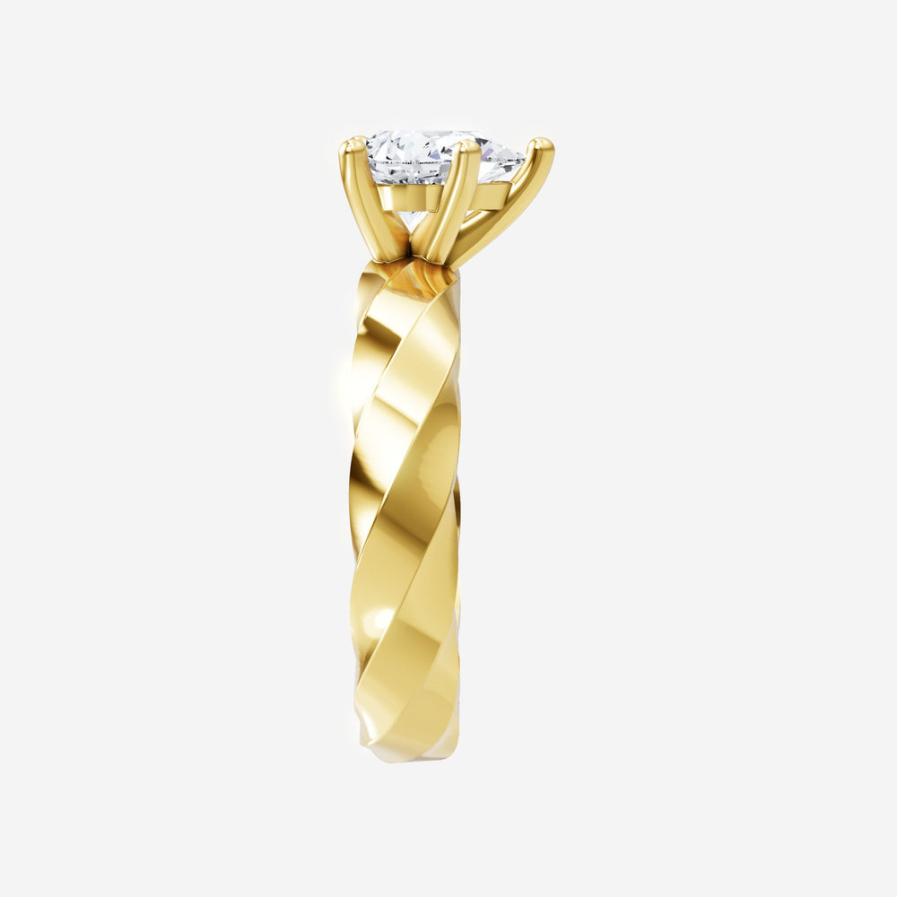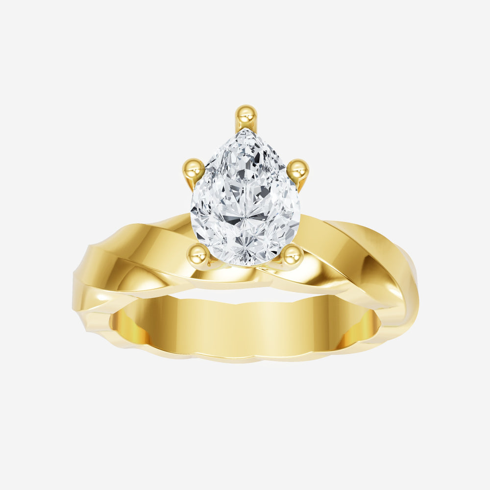 You’ve designed a ring that reflects lasting elegance and grace! Crafted from 18K Yellow Gold, this exquisite Pear lab-grown diamond is the centerpiece of this unique design. This Twisted Shank with a 4 Prong Flower Head head showcases the brilliance of the Pear diamond, creating a timeless look. This elegant piece is the perfect symbol of love, strength, and timeless beauty.