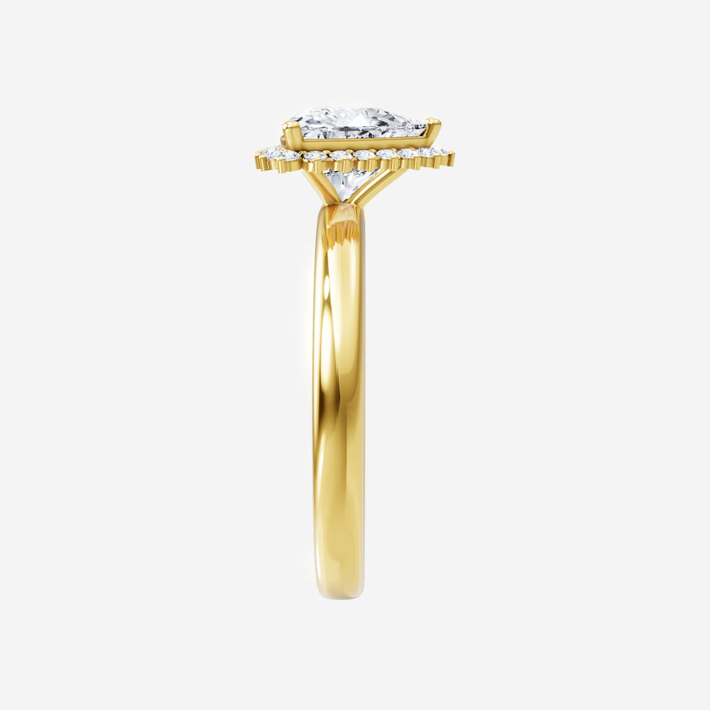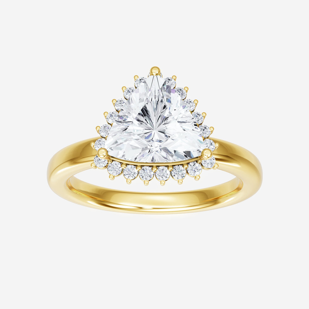 You’ve designed a ring that reflects lasting elegance and grace! Crafted from 18K Yellow Gold, this exquisite Trillion lab-grown diamond is the centerpiece of this unique design. This Basic Plain Shank with a 3 Prong Diana Halo head showcases the brilliance of the Trillion diamond, creating a timeless look. This stunning ring makes the perfect symbol of everlasting love and devotion.