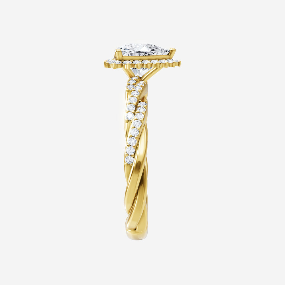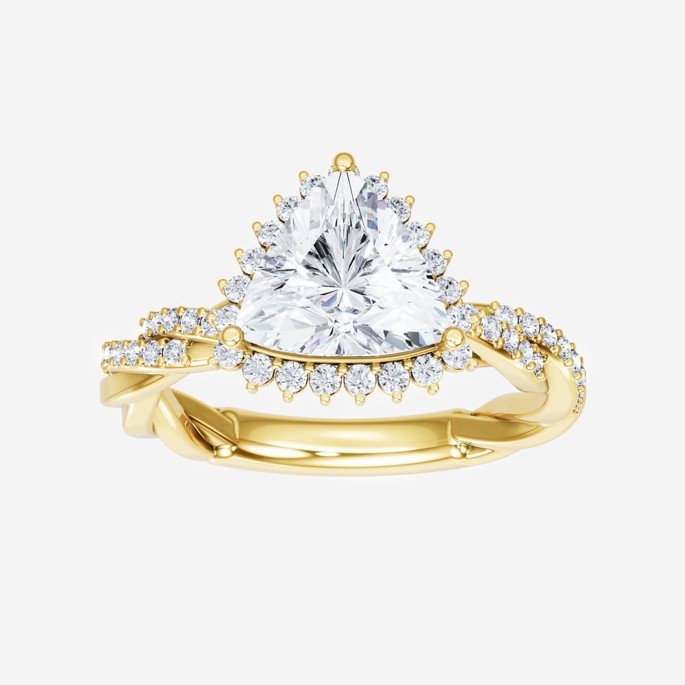 You’ve designed a ring that reflects lasting elegance and grace! Crafted from 18K Yellow Gold, this exquisite Trillion lab-grown diamond is the centerpiece of this unique design. This Rope Diamond Shank with a 3 Prong Diana Halo head showcases the brilliance of the Trillion diamond, creating a timeless look. This stunning ring makes the perfect symbol of everlasting love and devotion.