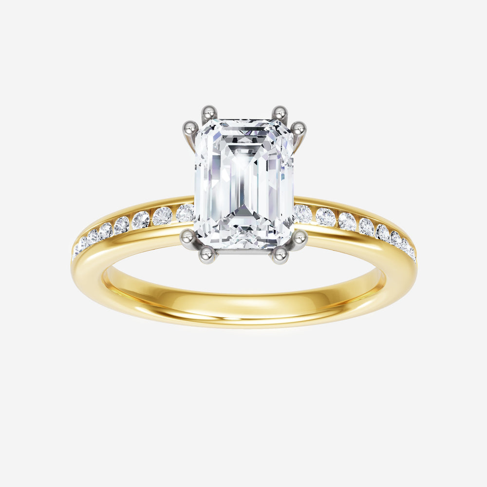 You’ve designed a ring that reflects lasting elegance and grace! Crafted from 18k Yellow White Dual Tone, this exquisite Emerald lab-grown diamond is the centerpiece of this unique design. This Channel Set Shank with a 4 Prong Split Prong head showcases the brilliance of the Emerald diamond, creating a timeless look. With this ring, celebrate every moment of joy, success, and love.