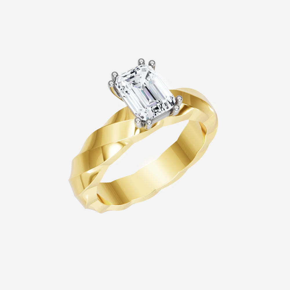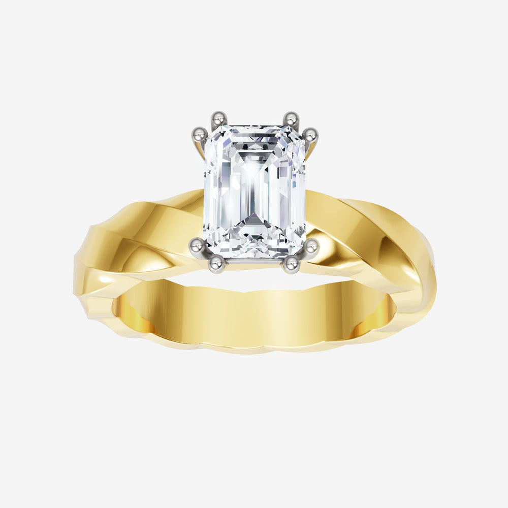 You’ve designed a ring that reflects lasting elegance and grace! Crafted from 18k Yellow White Dual Tone, this exquisite Emerald lab-grown diamond is the centerpiece of this unique design. This Twisted Shank with a 4 Prong Split Prong head showcases the brilliance of the Emerald diamond, creating a timeless look. With this ring, celebrate every moment of joy, success, and love.