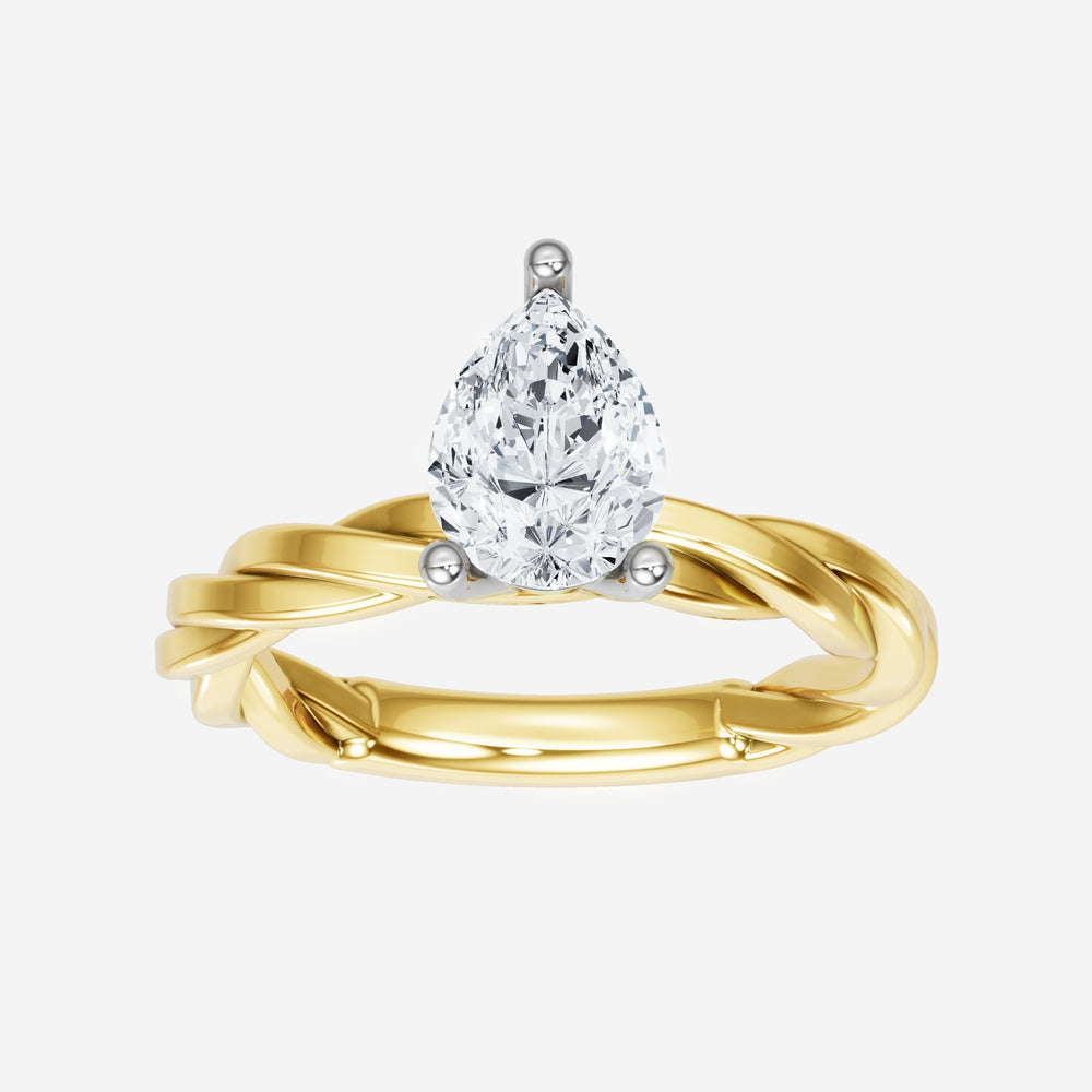 You’ve designed a ring that reflects lasting elegance and grace! Crafted from 18k Yellow White Dual Tone, this exquisite Pear lab-grown diamond is the centerpiece of this unique design. This Rope Plain Shank with a 3 Prong Head head showcases the brilliance of the Pear diamond, creating a timeless look. With this ring, celebrate every moment of joy, success, and love.