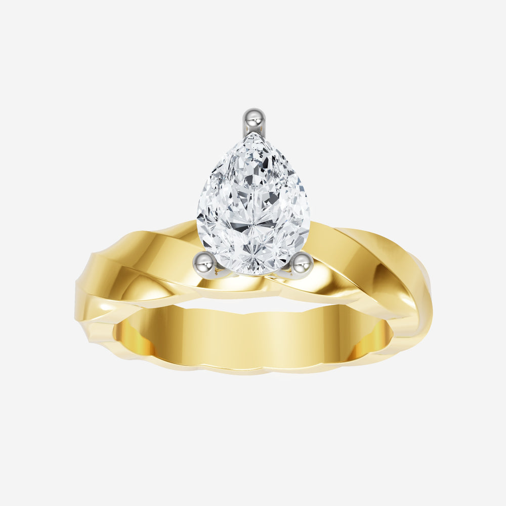 You’ve designed a ring that reflects lasting elegance and grace! Crafted from 18k Yellow White Dual Tone, this exquisite Pear lab-grown diamond is the centerpiece of this unique design. This Twisted Shank with a 3 Prong Head head showcases the brilliance of the Pear diamond, creating a timeless look. With this ring, celebrate every moment of joy, success, and love.