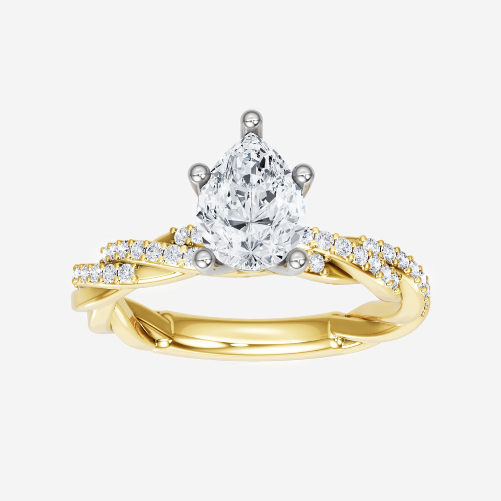 You’ve designed a ring that reflects lasting elegance and grace! Crafted from 18k Yellow White Dual Tone, this exquisite Pear lab-grown diamond is the centerpiece of this unique design. This Rope Diamond Shank with a 4 Prong Flower Head head showcases the brilliance of the Pear diamond, creating a timeless look. Ideal for those who seek both beauty and meaning, this ring will stand as a testament to cherished memories.