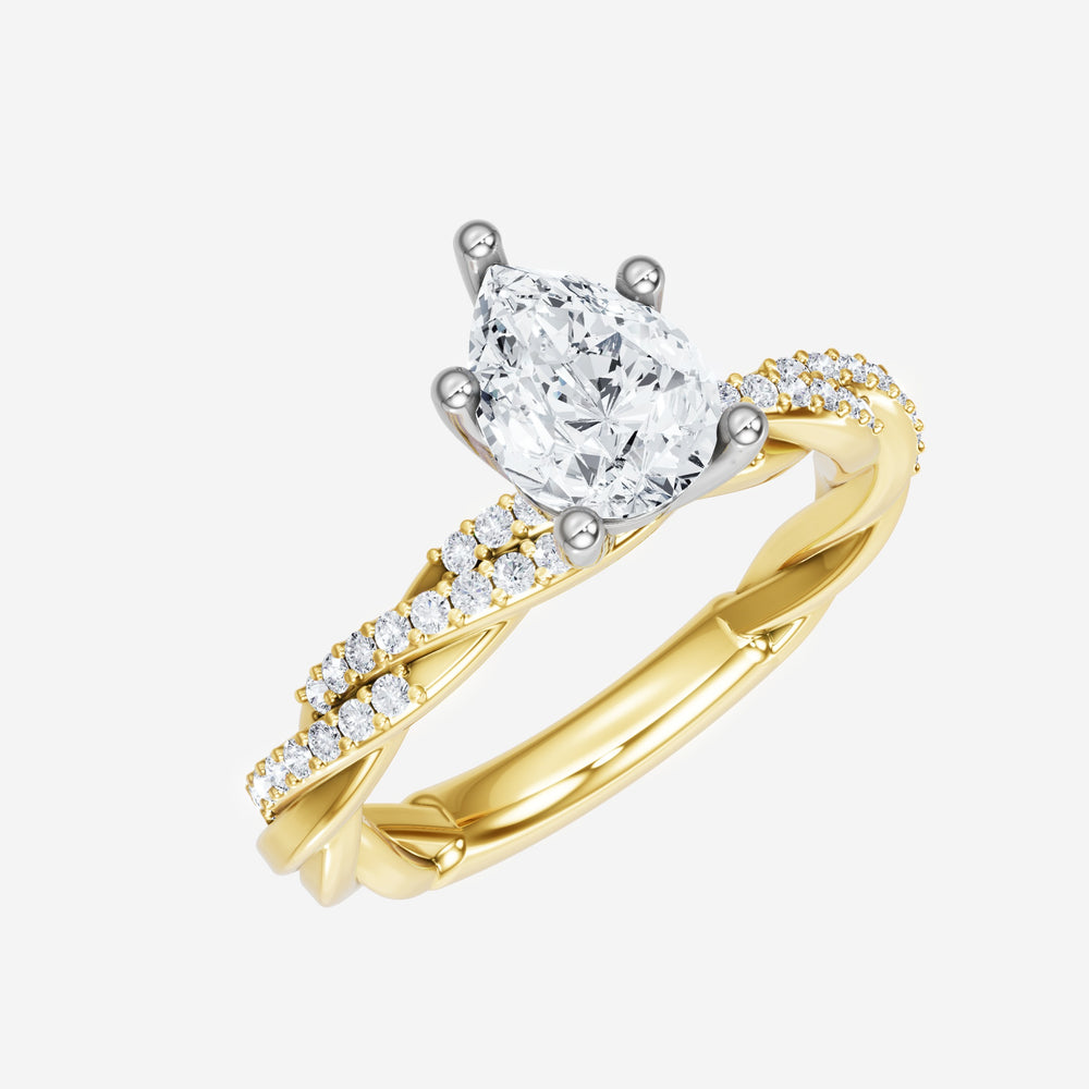 You’ve designed a ring that reflects lasting elegance and grace! Crafted from 18k Yellow White Dual Tone, this exquisite Pear lab-grown diamond is the centerpiece of this unique design. This Rope Diamond Shank with a 5 Prong Head head showcases the brilliance of the Pear diamond, creating a timeless look. This stunning ring makes the perfect symbol of everlasting love and devotion.