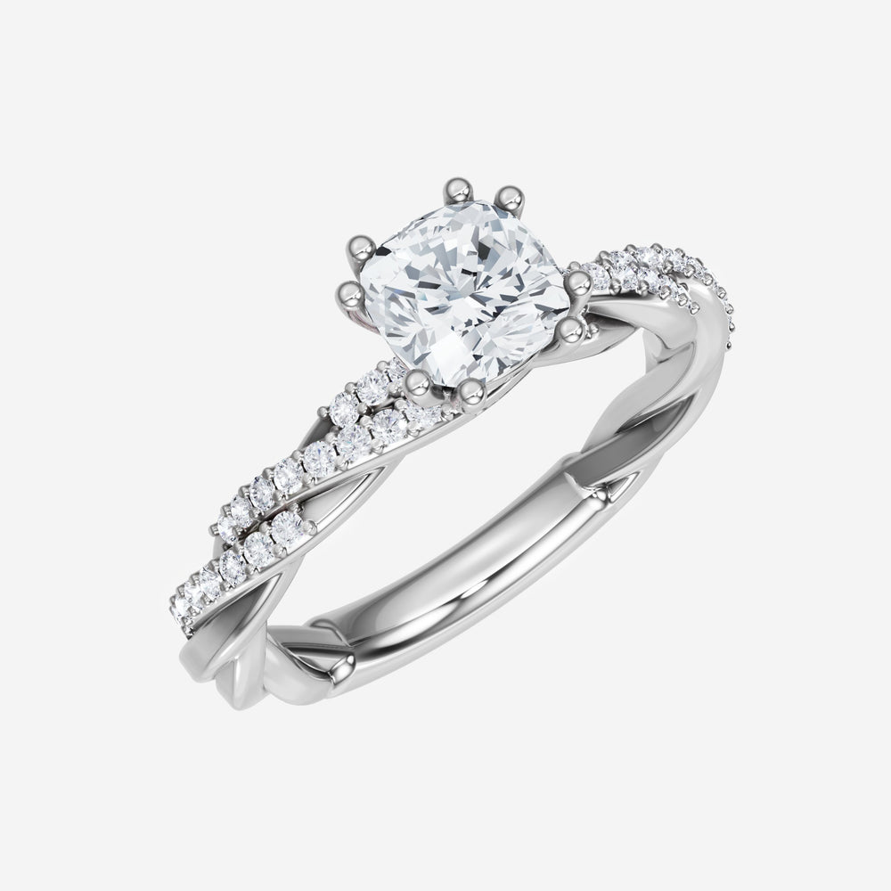 You’ve designed a ring that reflects lasting elegance and grace! Crafted from 950 Platinum, this exquisite Cushion lab-grown diamond is the centerpiece of this unique design. This Rope Diamond Shank with a 4 Prong Split Prong head showcases the brilliance of the Cushion diamond, creating a timeless look. This elegant piece is the perfect symbol of love, strength, and timeless beauty.
