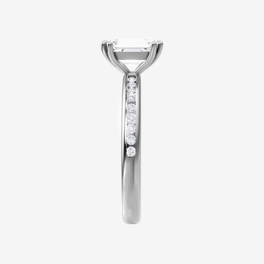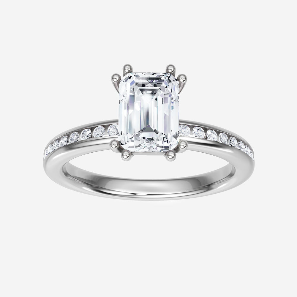 You’ve designed a ring that reflects lasting elegance and grace! Crafted from 950 Platinum, this exquisite Emerald lab-grown diamond is the centerpiece of this unique design. This Channel Set Shank with a 4 Prong Split Prong head showcases the brilliance of the Emerald diamond, creating a timeless look. Whether as a gift or a personal treasure, this ring will forever symbolize the most meaningful moments in life.