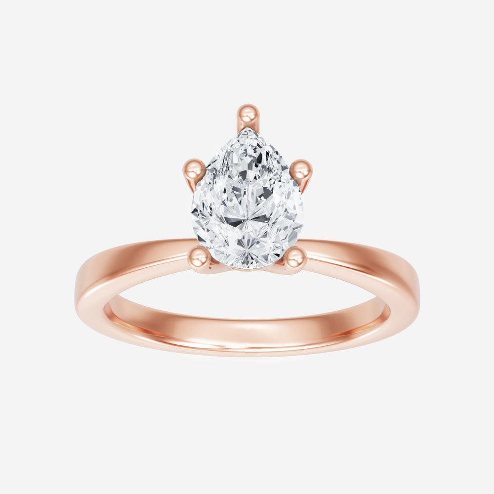 You’ve designed a ring that reflects lasting elegance and grace! Crafted from 14k Rose Gold, this exquisite Pear lab-grown diamond is the centerpiece of this unique design. This Bow Shank (Reverse Tapered) with a 4 Prong Flower Head head showcases the brilliance of the Pear diamond, creating a timeless look. Ideal for those who seek both beauty and meaning, this ring will stand as a testament to cherished memories.