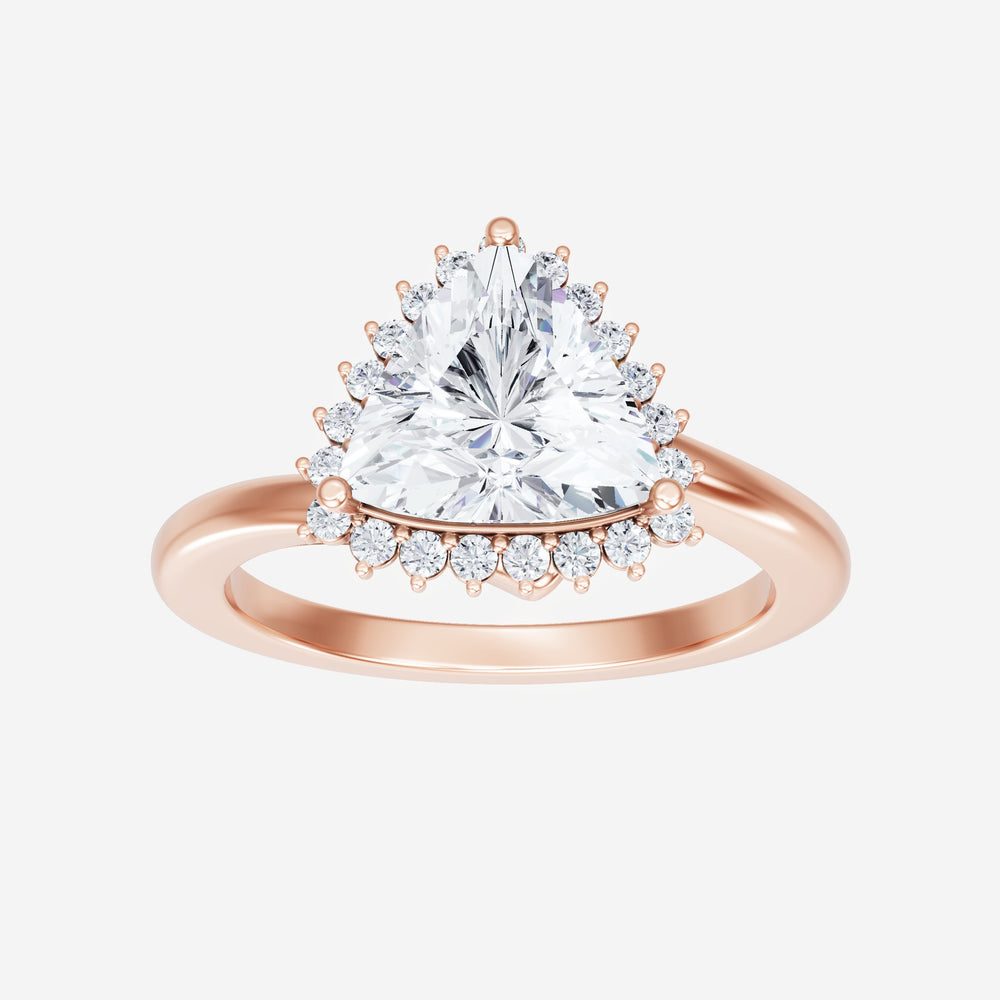 You’ve designed a ring that reflects lasting elegance and grace! Crafted from 14k Rose Gold, this exquisite Trillion lab-grown diamond is the centerpiece of this unique design. This Bypass Shank with a 3 Prong Diana Halo head showcases the brilliance of the Trillion diamond, creating a timeless look. This ring will become a cherished reminder of life's most treasured moments.