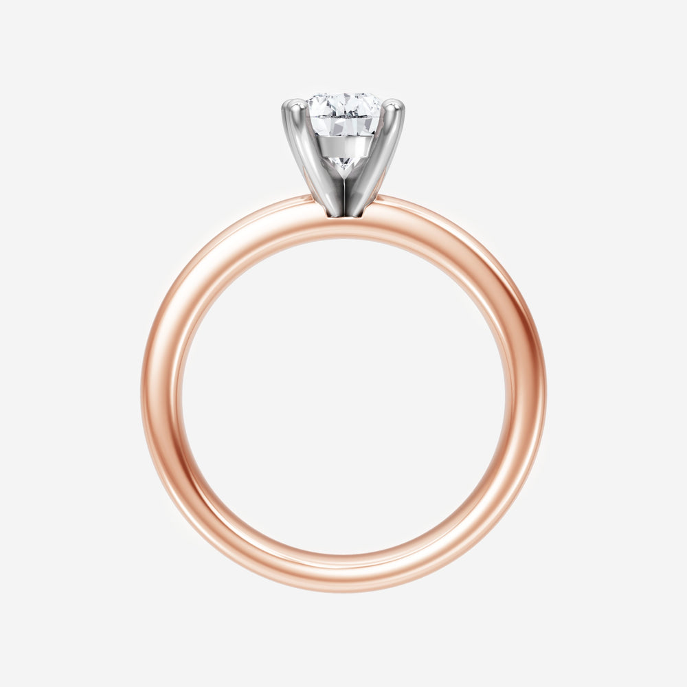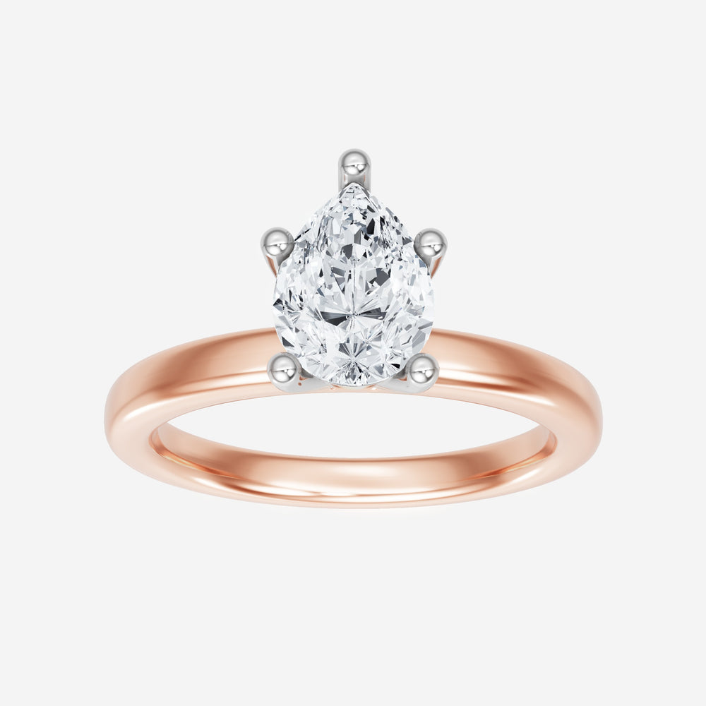 You’ve designed a ring that reflects lasting elegance and grace! Crafted from 14k Rose White Dual Tone, this exquisite Pear lab-grown diamond is the centerpiece of this unique design. This Basic Plain Shank with a 5 Prong Head head showcases the brilliance of the Pear diamond, creating a timeless look. It's a piece of elegance and beauty, perfect for marking life's most beautiful occasions.