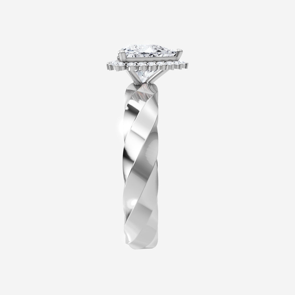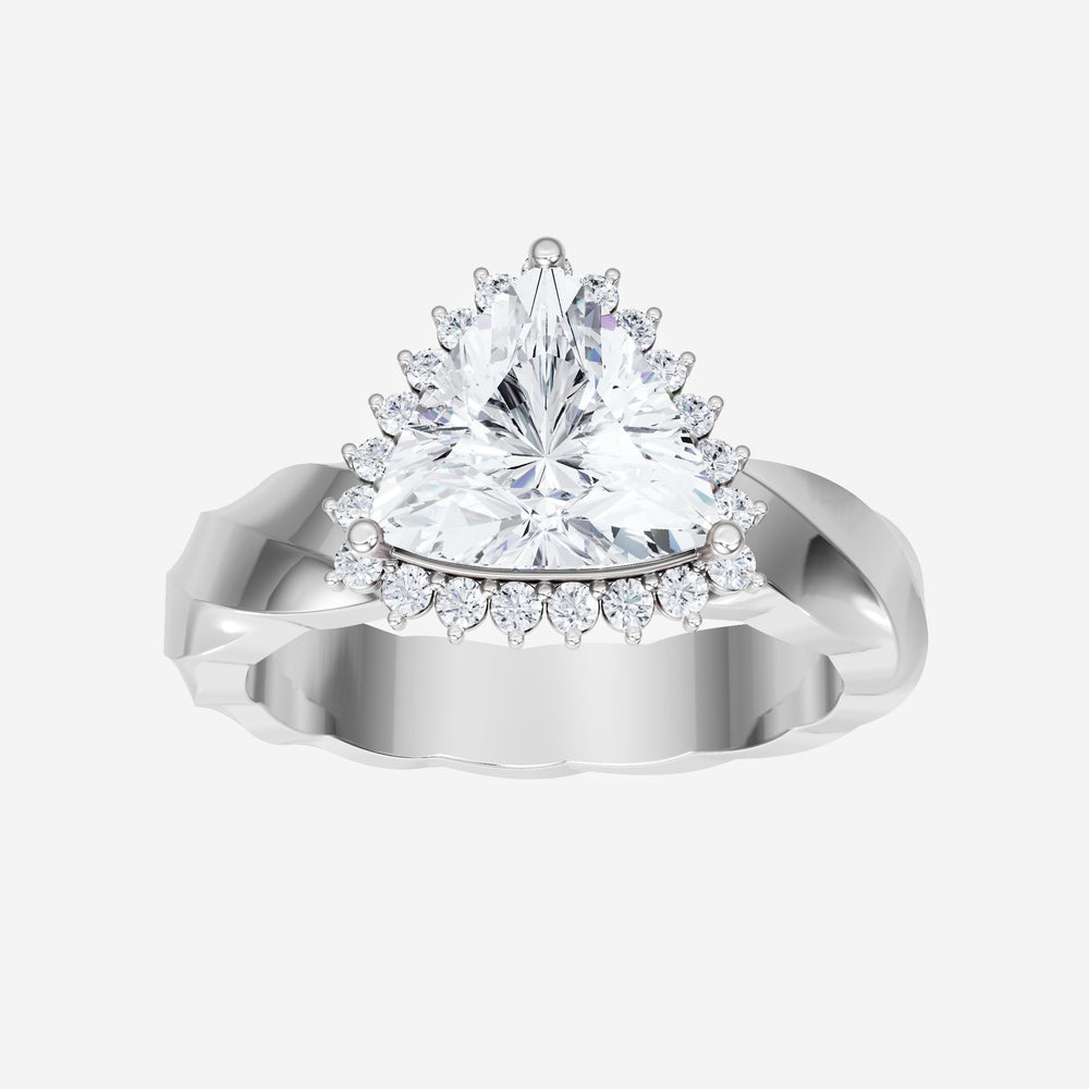 You’ve designed a ring that reflects lasting elegance and grace! Crafted from 14K White Gold, this exquisite Trillion lab-grown diamond is the centerpiece of this unique design. This Twisted Shank with a 3 Prong Diana Halo head showcases the brilliance of the Trillion diamond, creating a timeless look. It's a piece of elegance and beauty, perfect for marking life's most beautiful occasions.