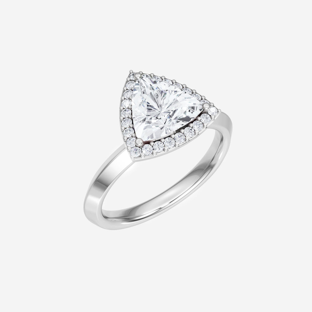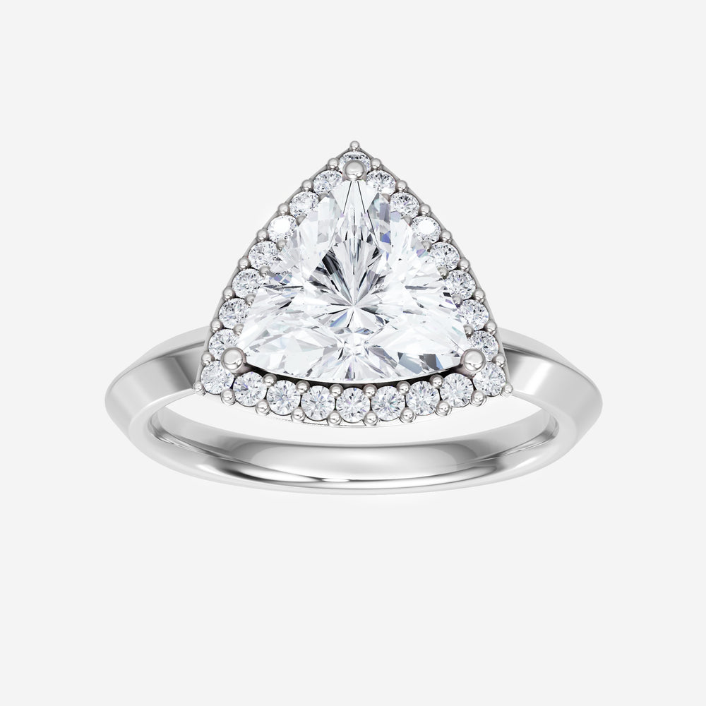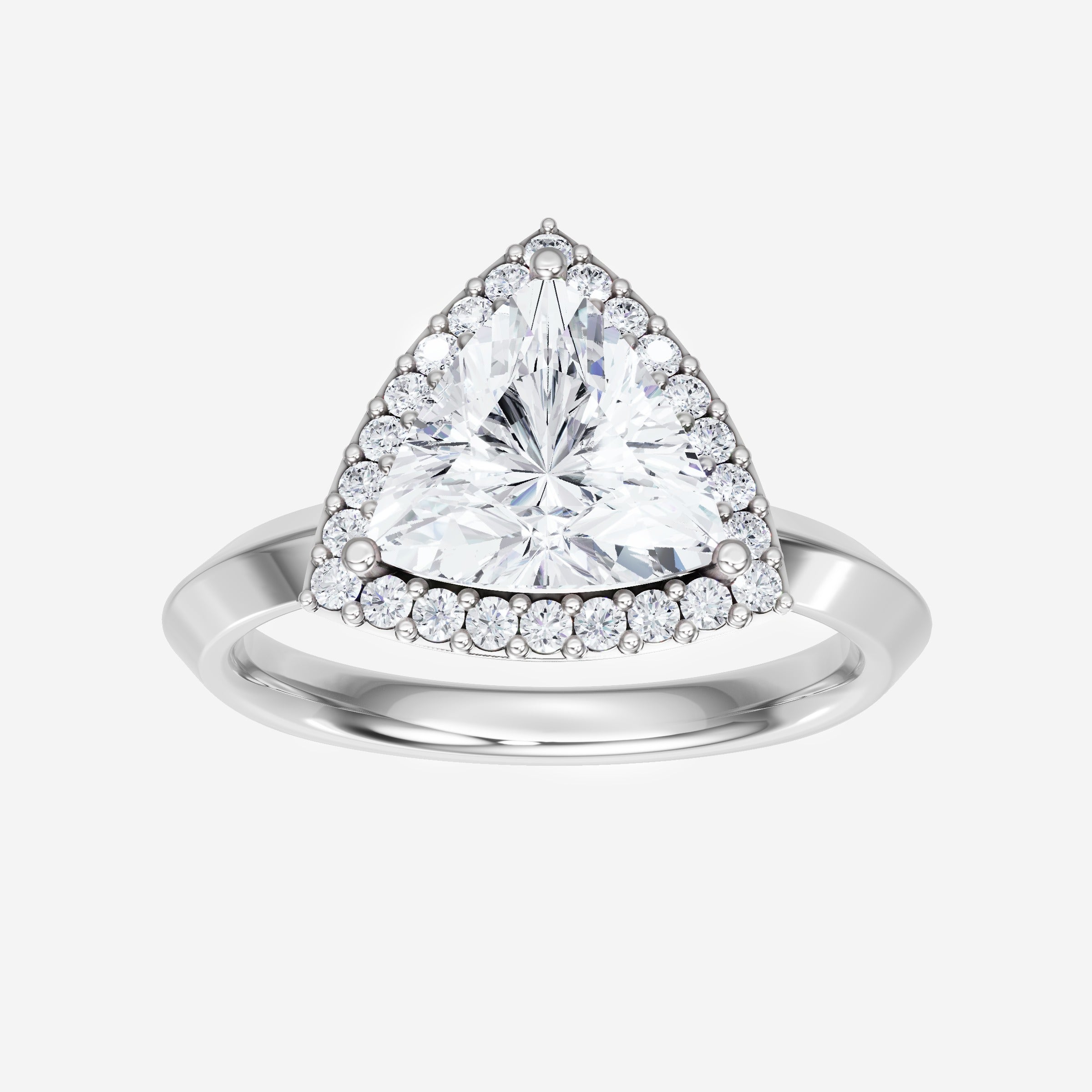 You’ve designed a ring that reflects lasting elegance and grace! Crafted from 14K White Gold, this exquisite Trillion lab-grown diamond is the centerpiece of this unique design. This Knife Edge Shank with a 3 Prong Single Halo head showcases the brilliance of the Trillion diamond, creating a timeless look. A perfect choice to celebrate love, commitment, and everything in between.