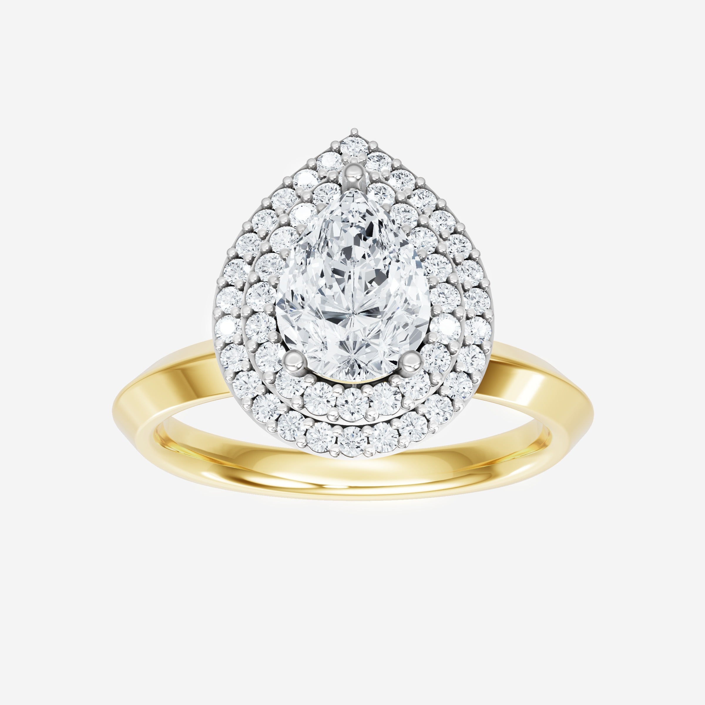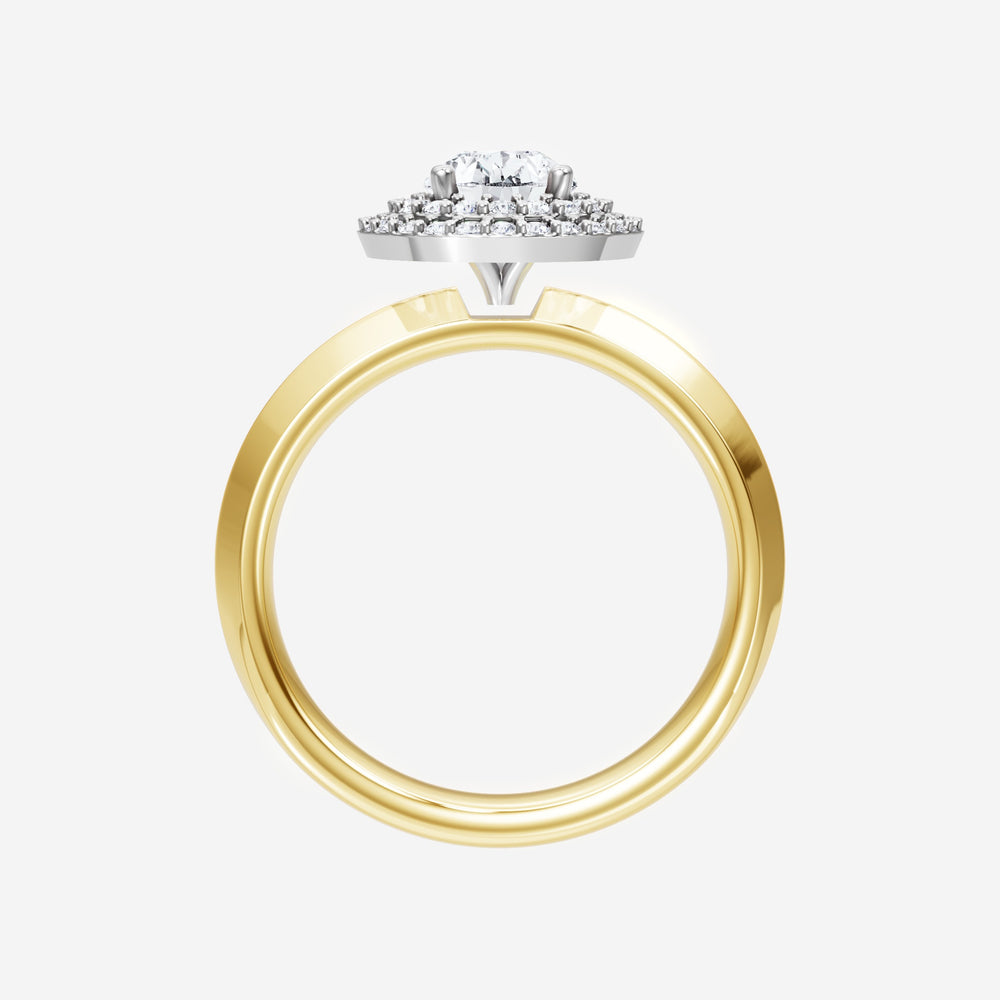 You’ve designed a ring that reflects lasting elegance and grace! Crafted from 14k Yellow White Dual Tone, this exquisite Pear lab-grown diamond is the centerpiece of this unique design. This Knife Edge Shank with a Double Halo head showcases the brilliance of the Pear diamond, creating a timeless look. This ring will become a cherished reminder of life's most treasured moments.