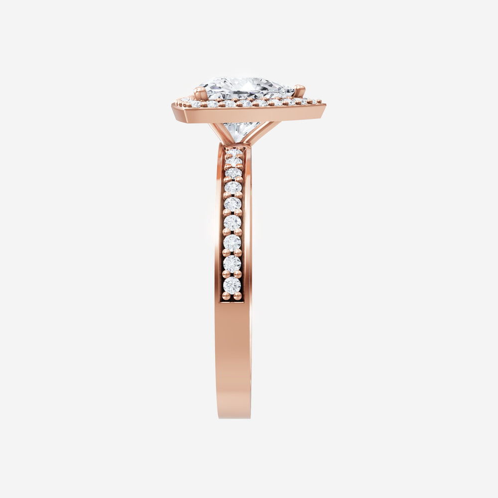 You’ve designed a ring that reflects lasting elegance and grace! Crafted from 18K Rose Gold, this exquisite Heart lab-grown diamond is the centerpiece of this unique design. This Single Pave Shank with a 3 Prong Single Halo head showcases the brilliance of the Heart diamond, creating a timeless look. Whether as a gift or a personal treasure, this ring will forever symbolize the most meaningful moments in life.