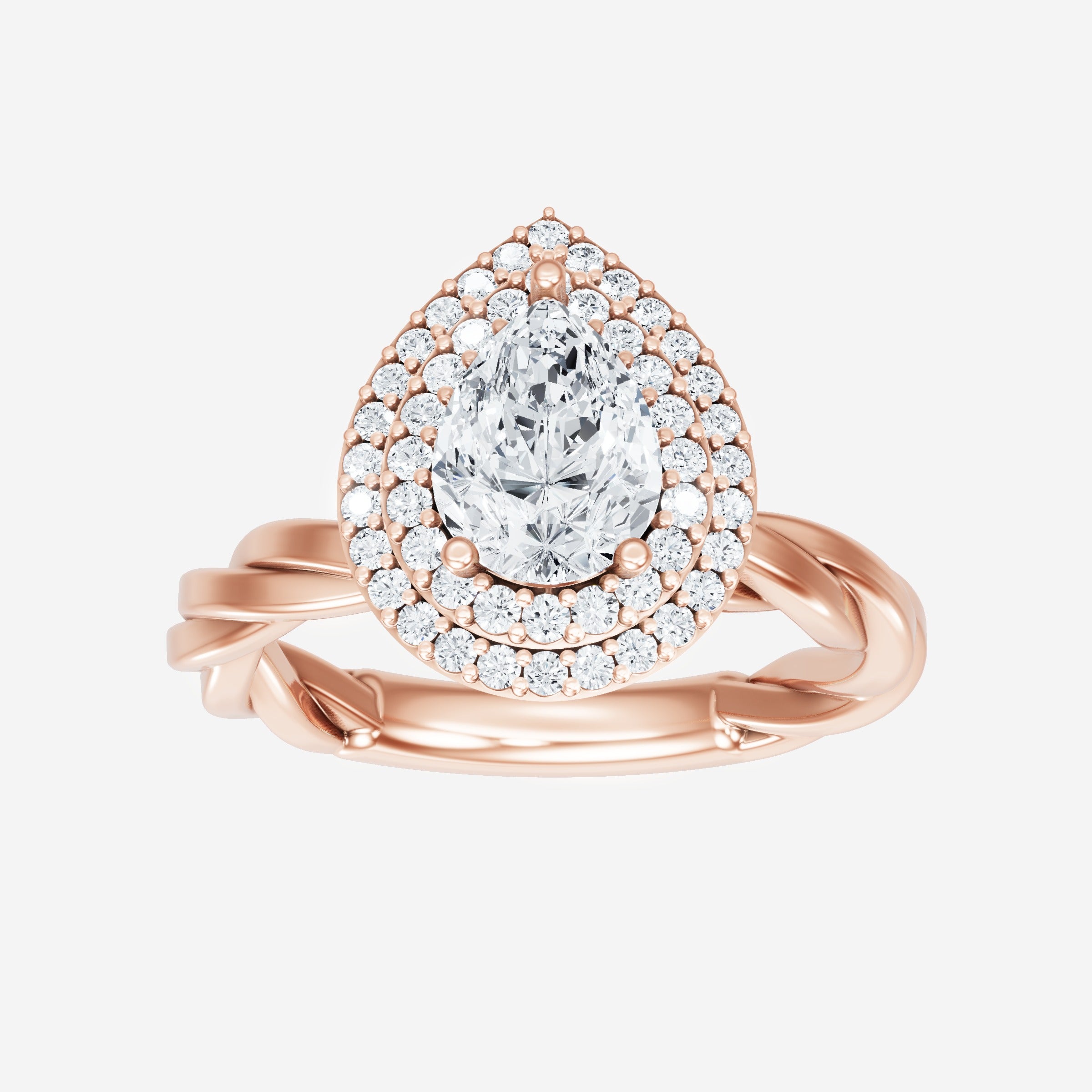 You’ve designed a ring that reflects lasting elegance and grace! Crafted from 18K Rose Gold, this exquisite Pear lab-grown diamond is the centerpiece of this unique design. This Rope Plain Shank with a Double Halo head showcases the brilliance of the Pear diamond, creating a timeless look. This stunning ring makes the perfect symbol of everlasting love and devotion.
