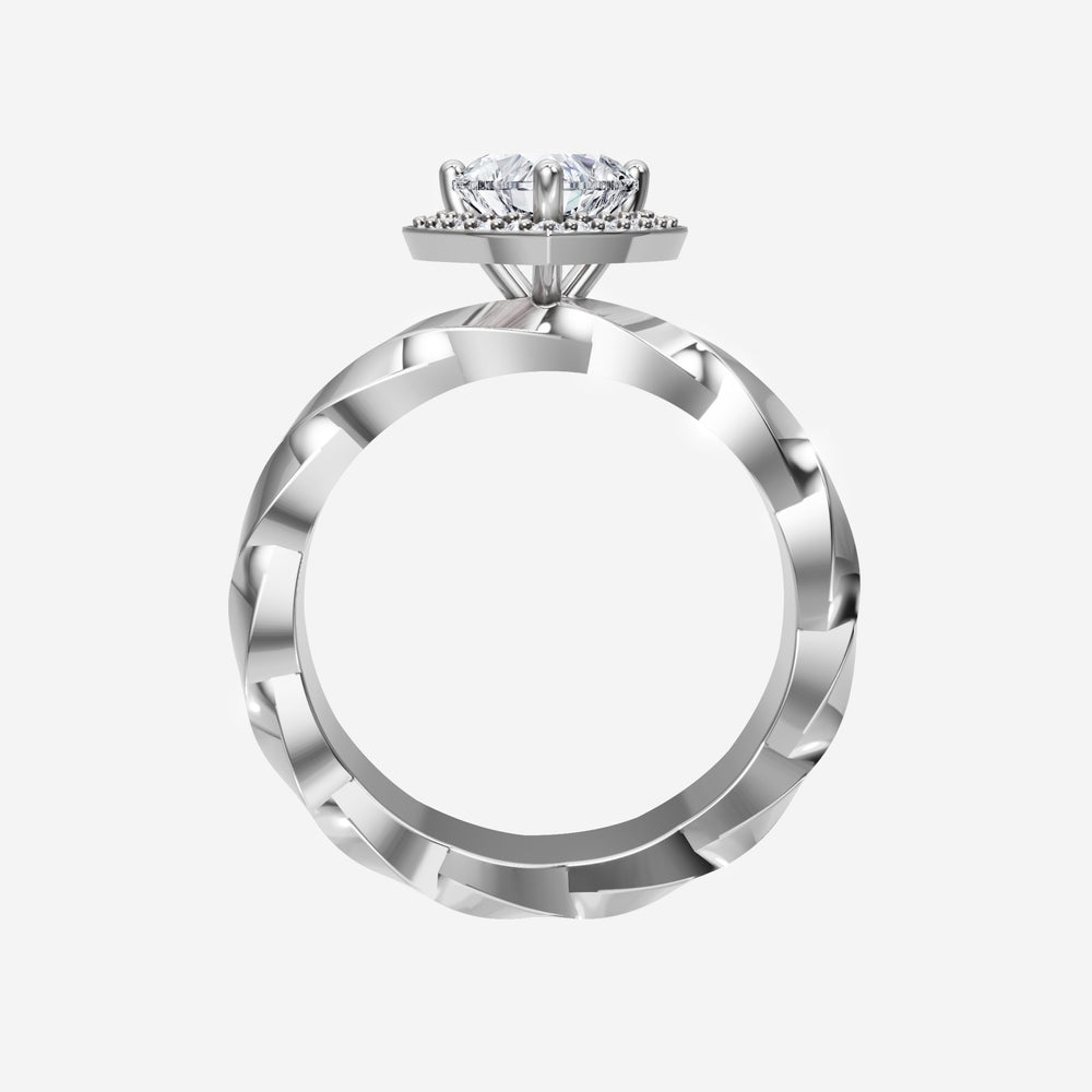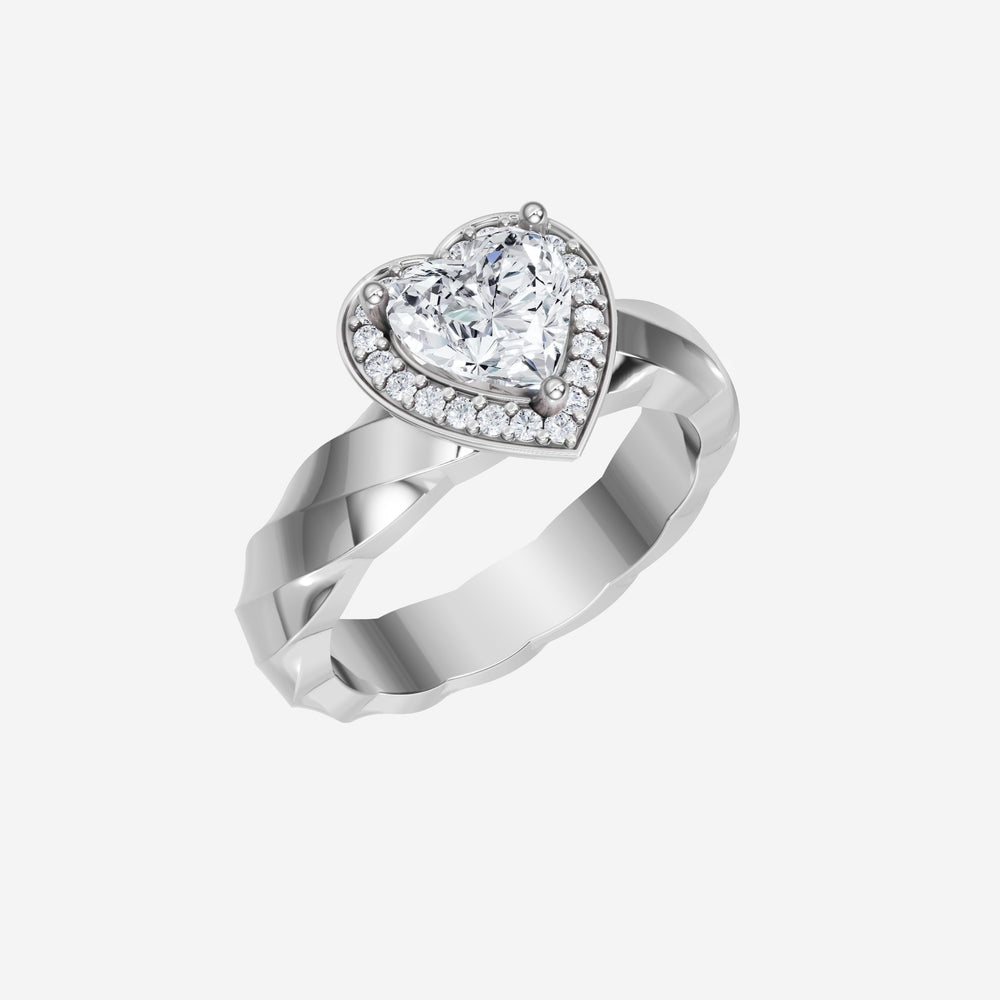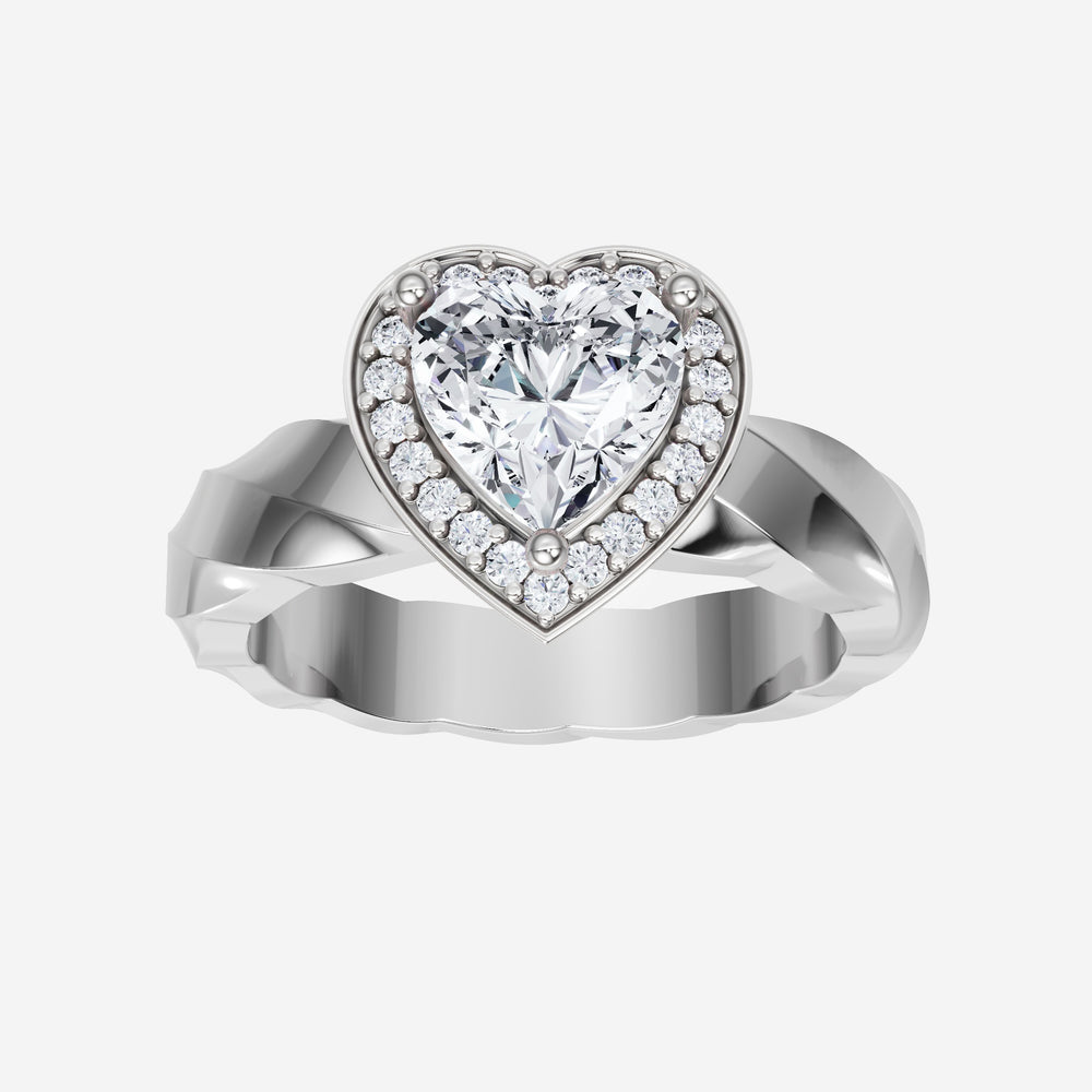 You’ve designed a ring that reflects lasting elegance and grace! Crafted from 18K White Gold, this exquisite Heart lab-grown diamond is the centerpiece of this unique design. This Twisted Shank with a 3 Prong Pave head showcases the brilliance of the Heart diamond, creating a timeless look. A perfect choice to celebrate love, commitment, and everything in between.