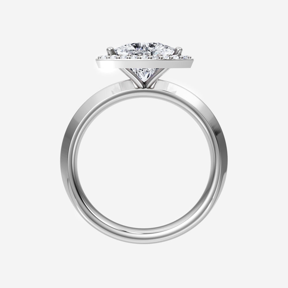 You’ve designed a ring that reflects lasting elegance and grace! Crafted from 18K White Gold, this exquisite Heart lab-grown diamond is the centerpiece of this unique design. This Knife Edge Shank with a 3 Prong Single Halo head showcases the brilliance of the Heart diamond, creating a timeless look. Ideal for those who seek both beauty and meaning, this ring will stand as a testament to cherished memories.