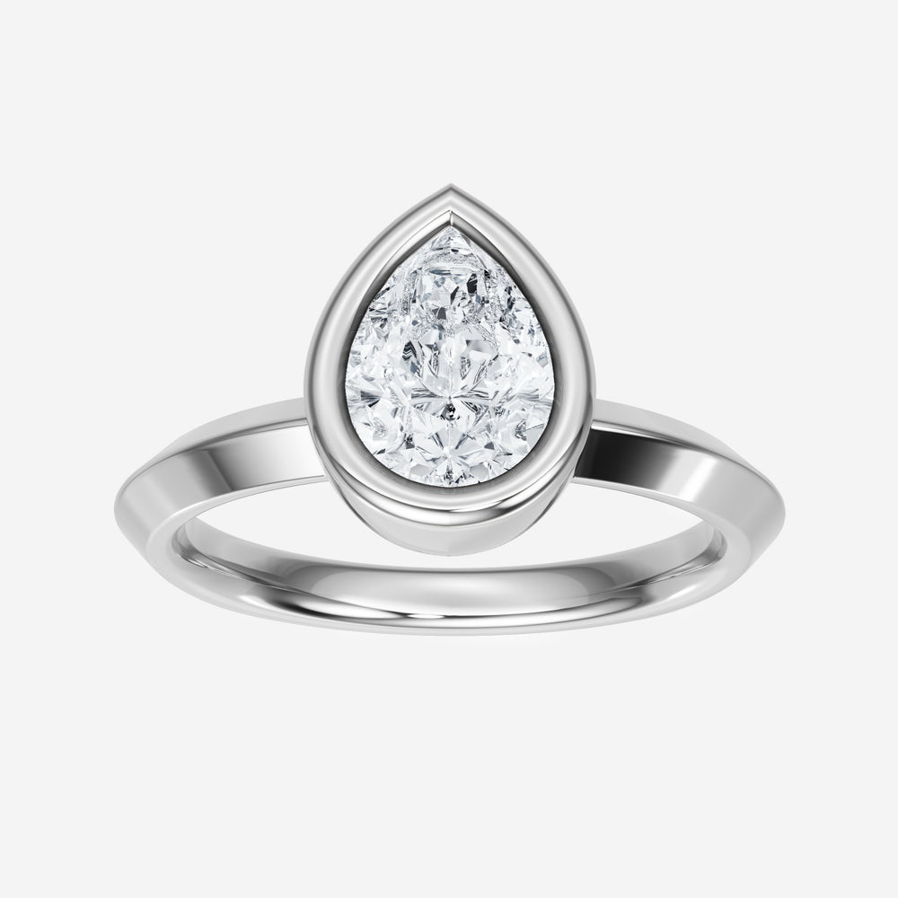 You’ve designed a ring that reflects lasting elegance and grace! Crafted from 18K White Gold, this exquisite Pear lab-grown diamond is the centerpiece of this unique design. This Knife Edge Shank with a Bezel Set Center head showcases the brilliance of the Pear diamond, creating a timeless look. This stunning ring makes the perfect symbol of everlasting love and devotion.
