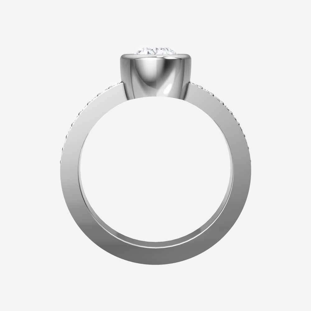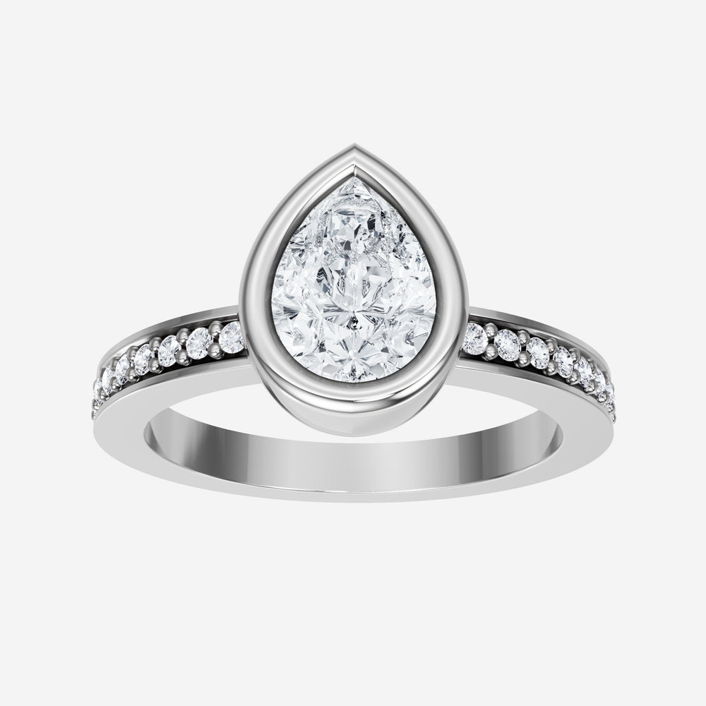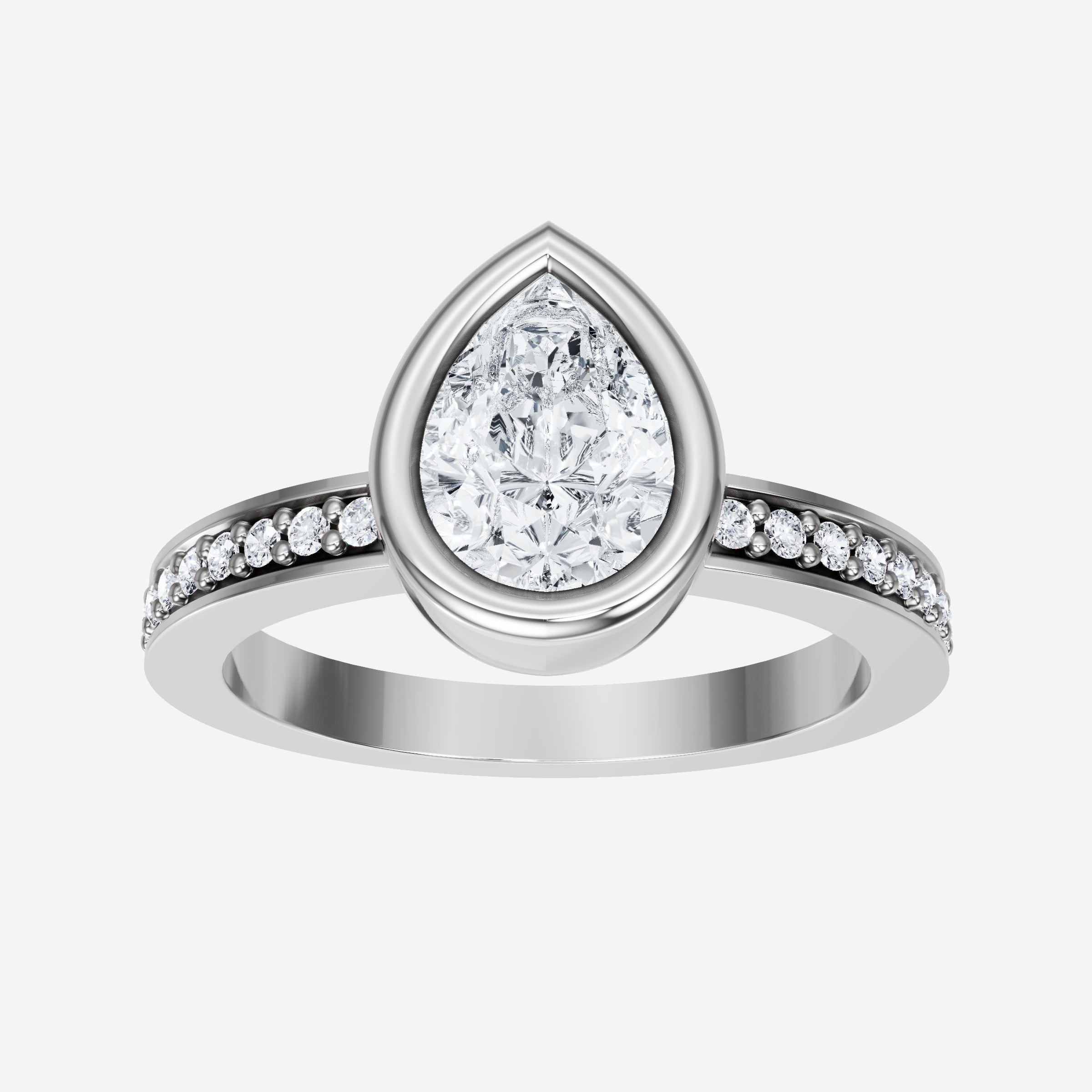 You’ve designed a ring that reflects lasting elegance and grace! Crafted from 18K White Gold, this exquisite Pear lab-grown diamond is the centerpiece of this unique design. This Single Pave Shank with a Bezel Set Center head showcases the brilliance of the Pear diamond, creating a timeless look. This ring will become a cherished reminder of life's most treasured moments.