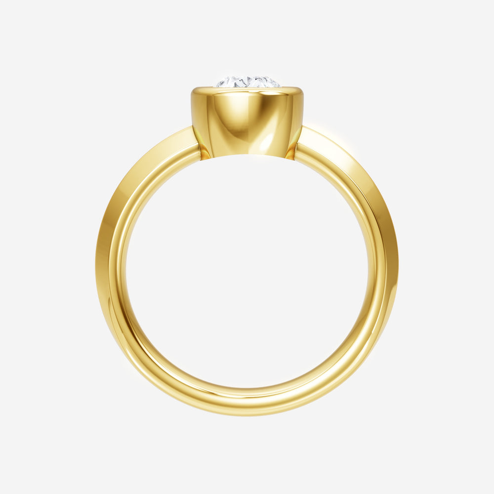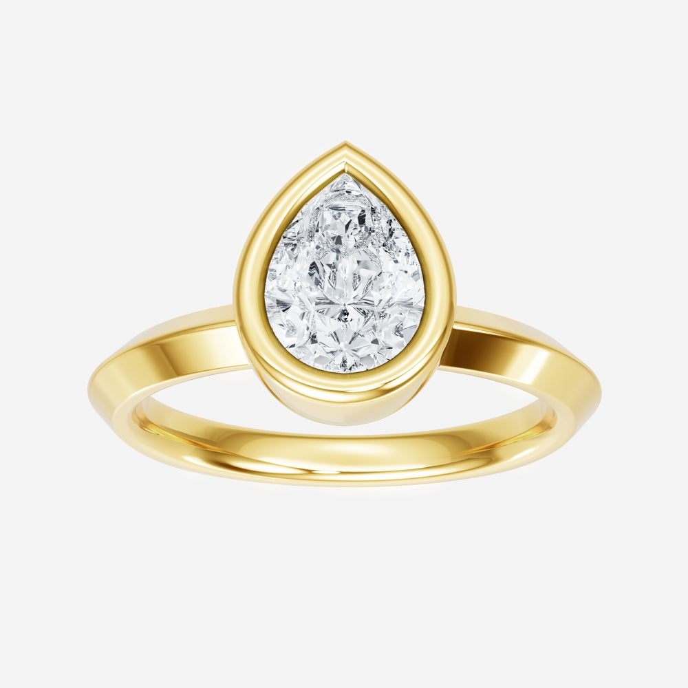 You’ve designed a ring that reflects lasting elegance and grace! Crafted from 18K Yellow Gold, this exquisite Pear lab-grown diamond is the centerpiece of this unique design. This Knife Edge Shank with a Bezel Set Center head showcases the brilliance of the Pear diamond, creating a timeless look. This stunning ring makes the perfect symbol of everlasting love and devotion.