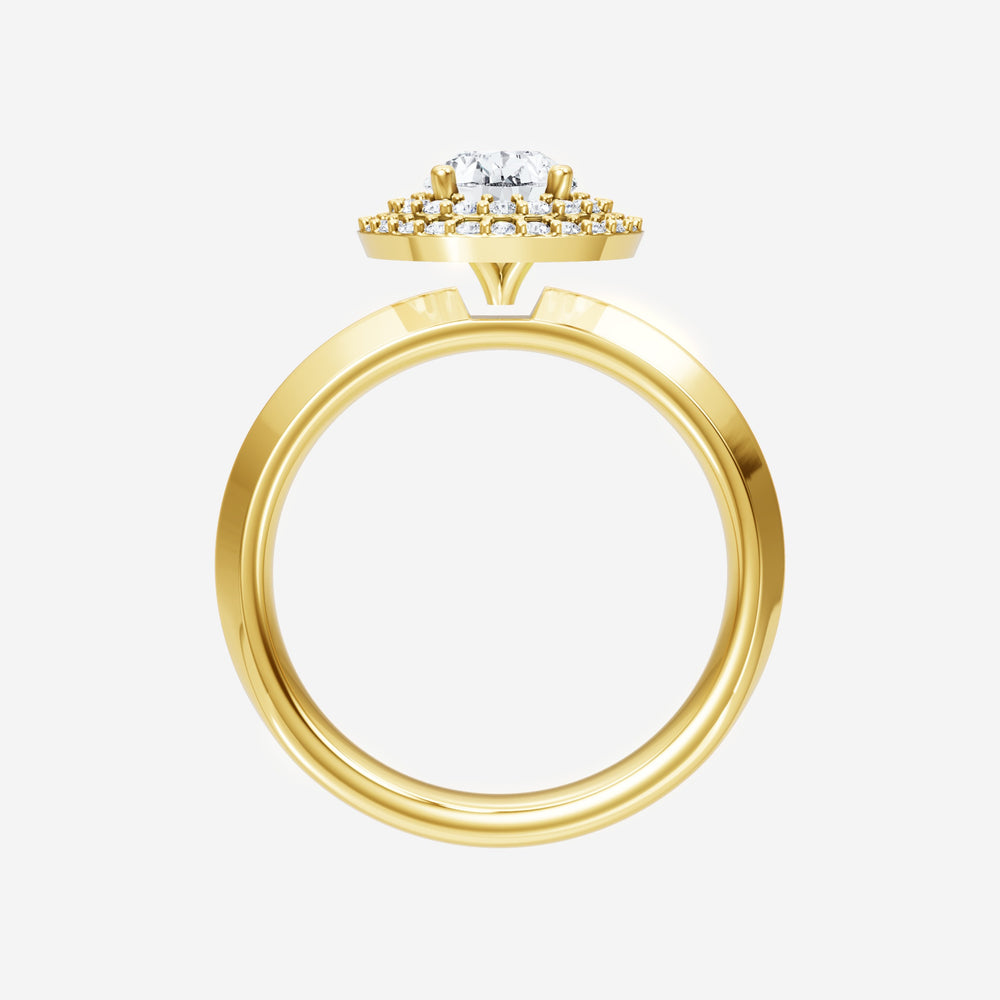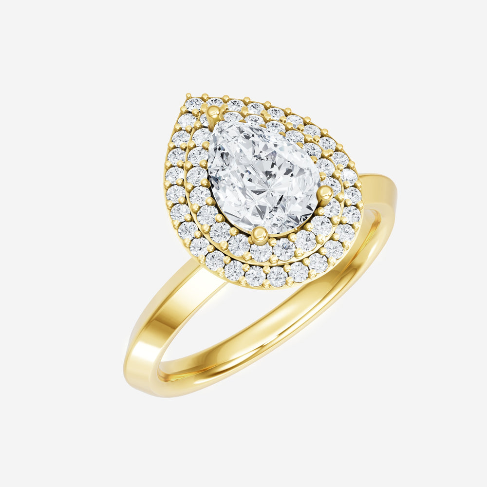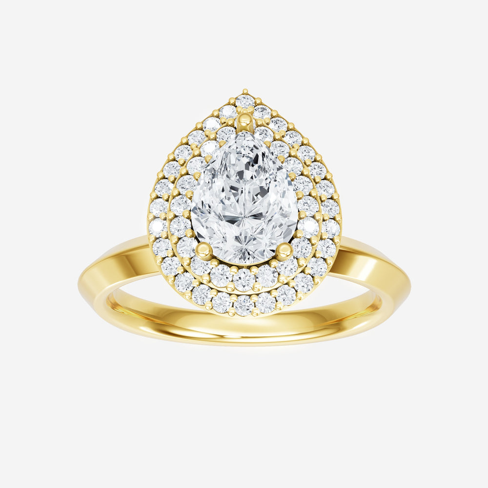 You’ve designed a ring that reflects lasting elegance and grace! Crafted from 18K Yellow Gold, this exquisite Pear lab-grown diamond is the centerpiece of this unique design. This Knife Edge Shank with a Double Halo head showcases the brilliance of the Pear diamond, creating a timeless look. This ring will become a cherished reminder of life's most treasured moments.